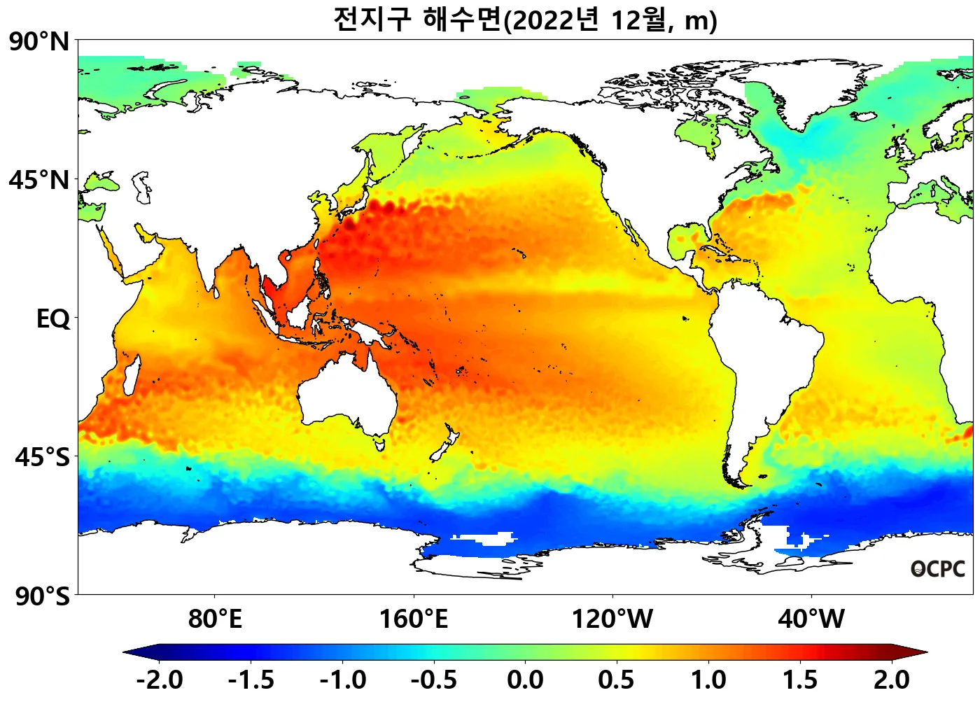 특히 인도-태평양 웜풀해역(열대 서태평양과 인도네시아 주변 해역)의 해수면이 평년보다 두드러지게 높았습니다.