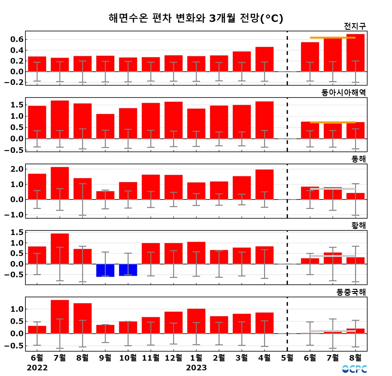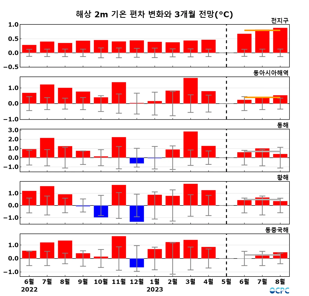 A. 전지구 해상기온 전망(2023년 6~8월 평균)
