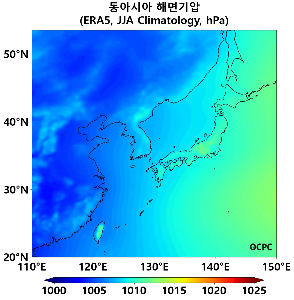 B. 동아시아 해면기압(평년 6~8월 평균)