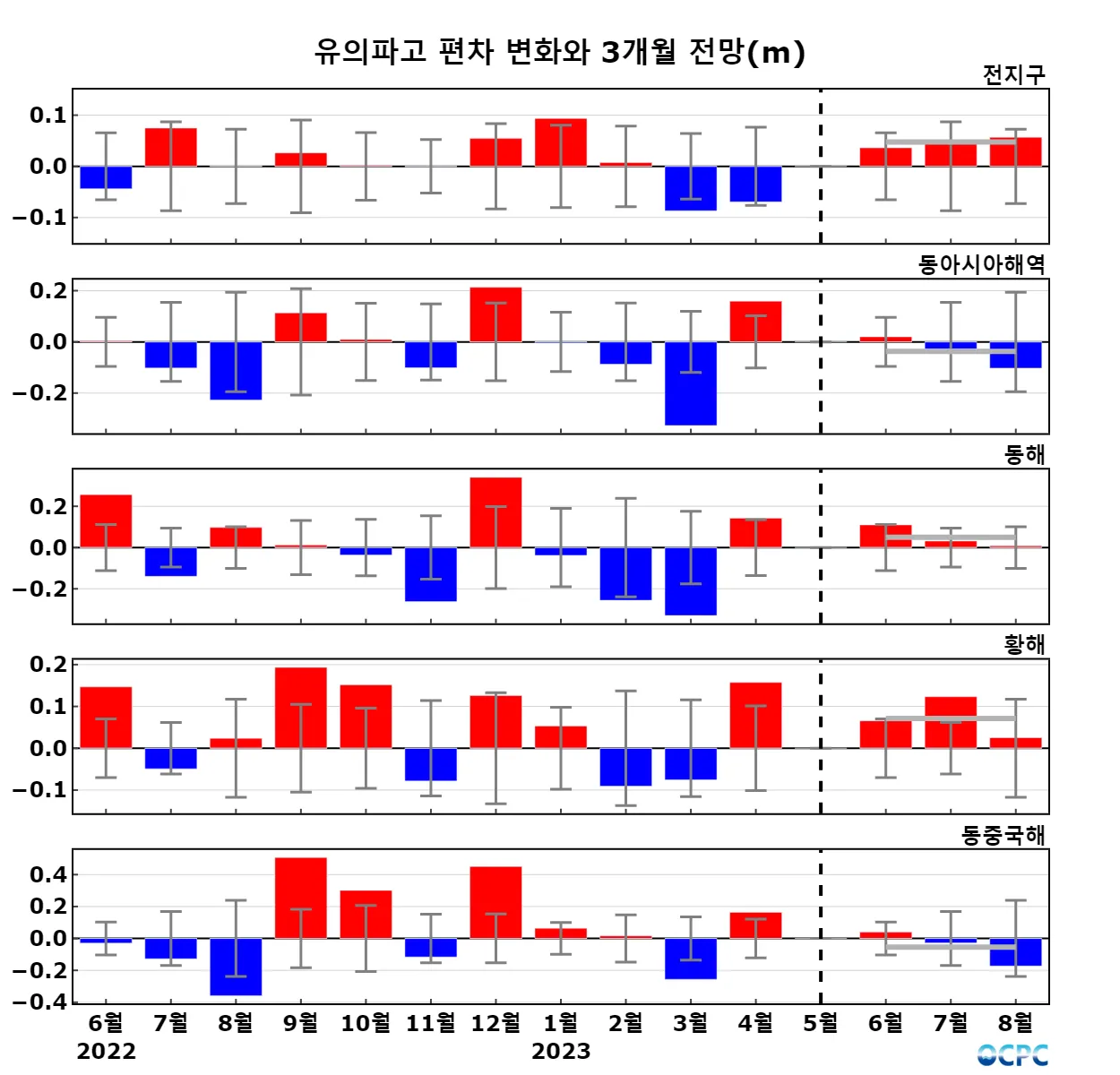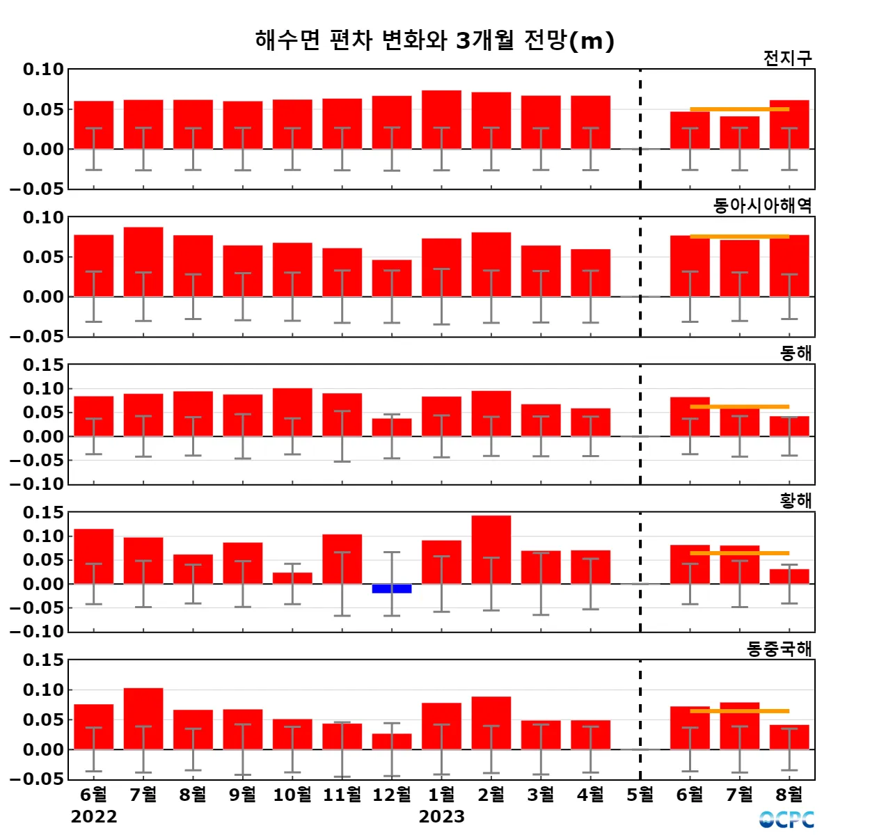 A. 전지구 해수면 전망(2023년 6~8월 평균)