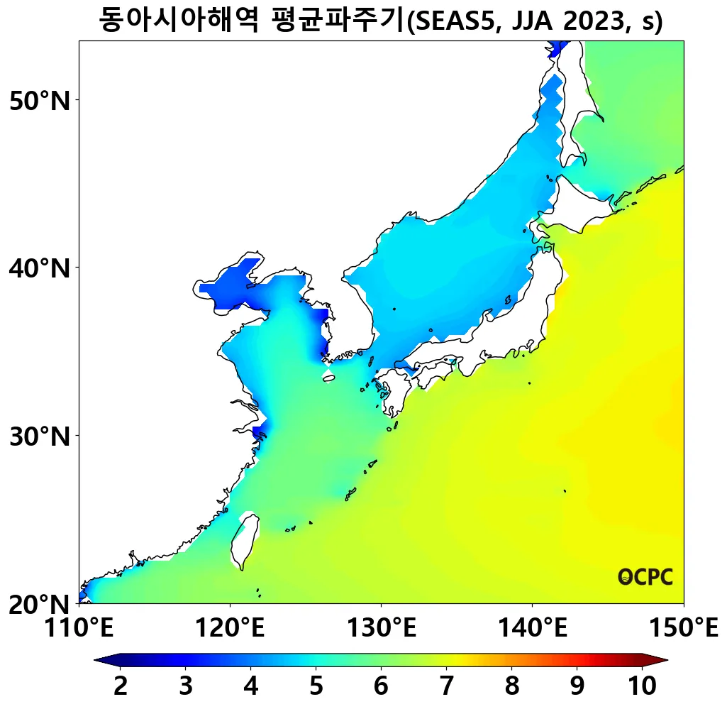 A. 동아시아해역 평균파주기 전망(2023년 6~8월 평균)