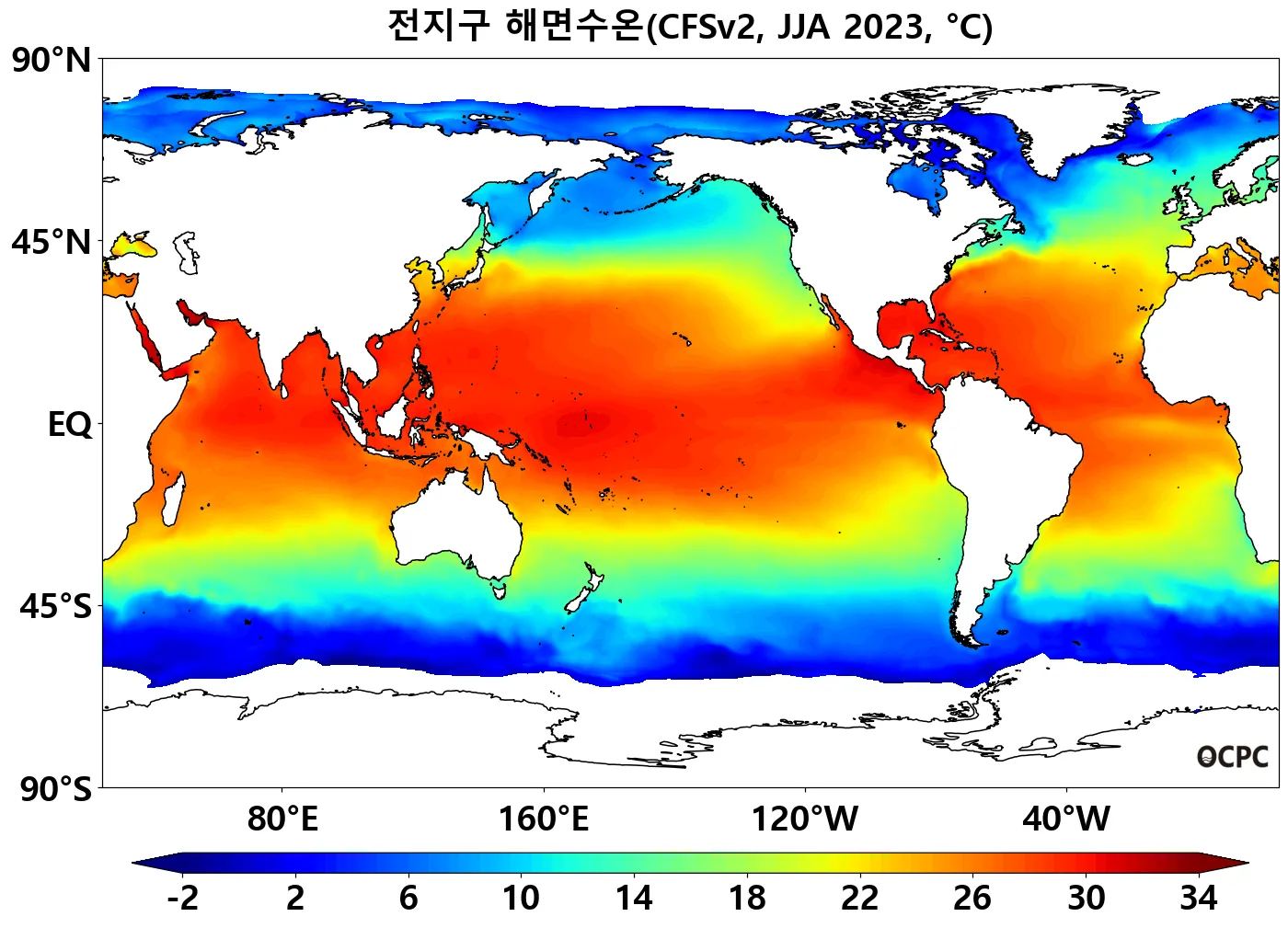 A. 전지구 해면수온 전망(2023년 6~8월 평균)