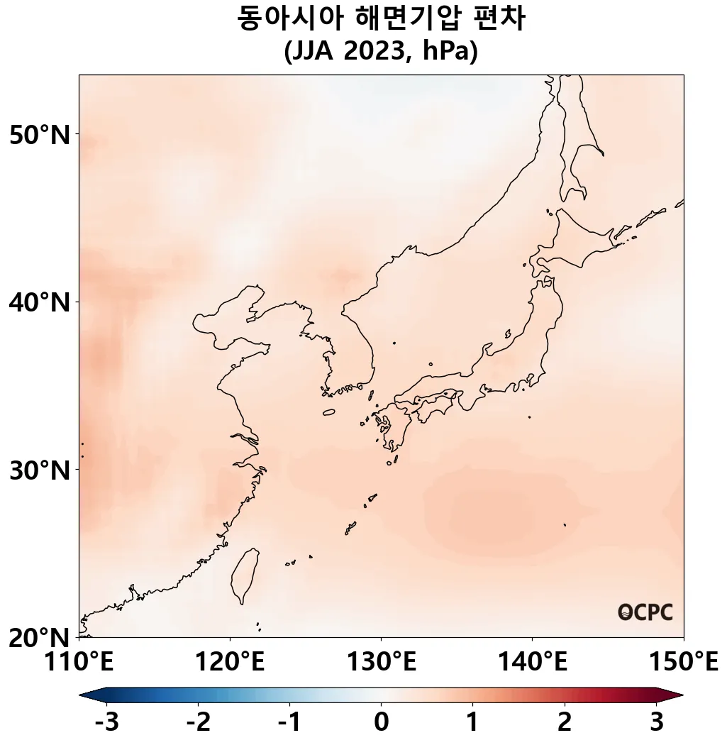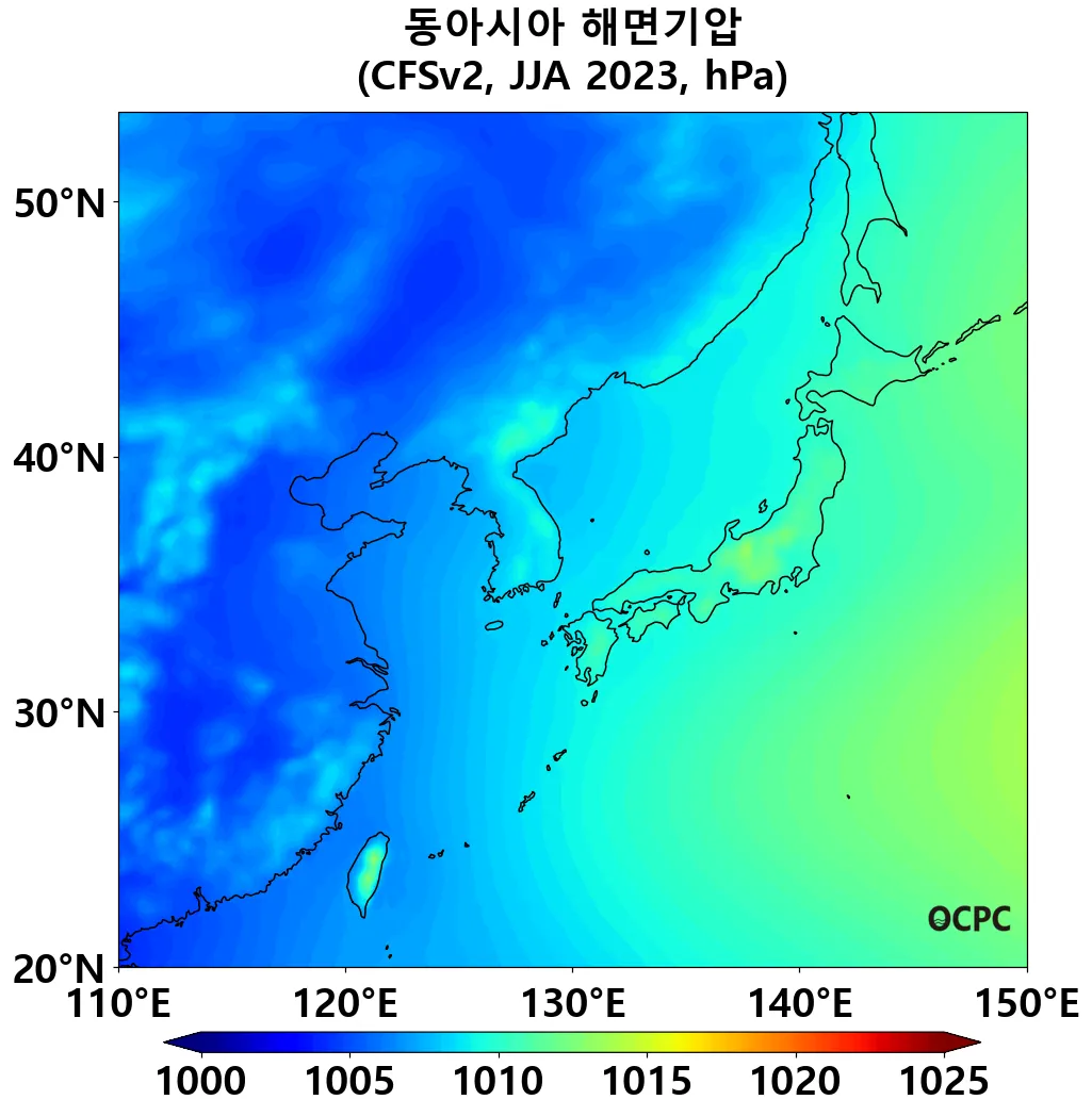 A. 동아시아 해면기압 전망(2023년 6~8월 평균)