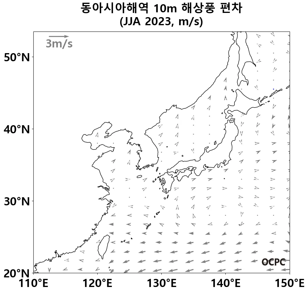 A. 동아시아해역 해상풍 전망(2023년 6~8월 평균)