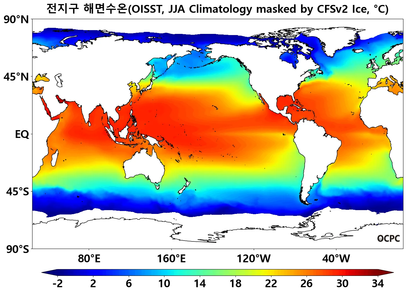 B. 전지구 해면수온(평년 6~8월 평균), 예상 해빙 해역 제외
