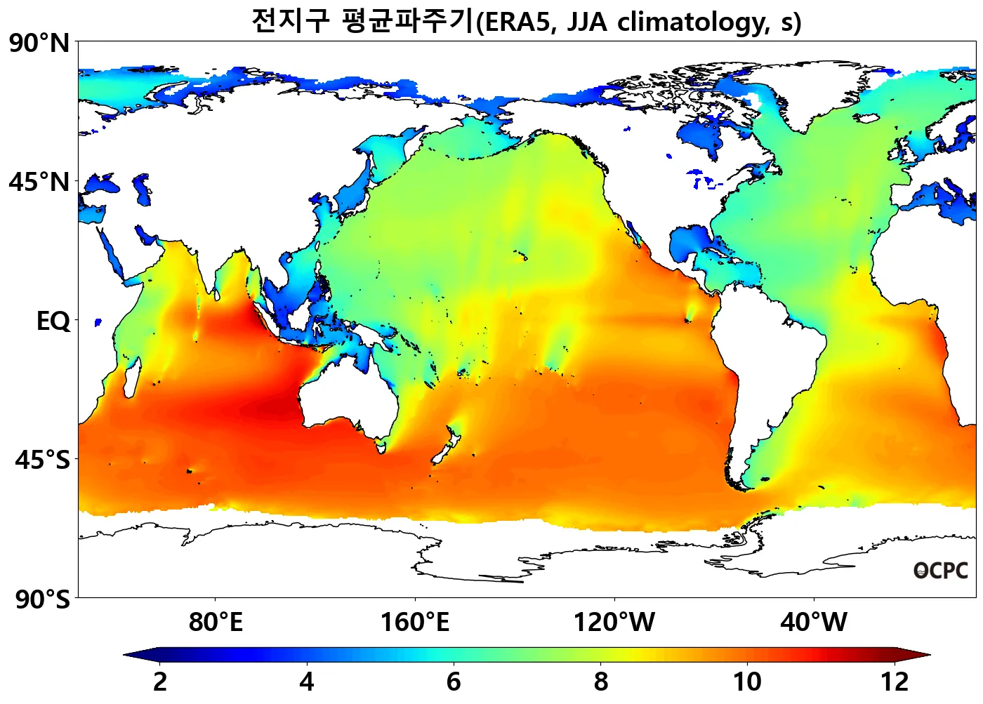 전지구 평균파주기는 평년(8.3±0.2초)과 비슷할 것으로 전망됩니다.