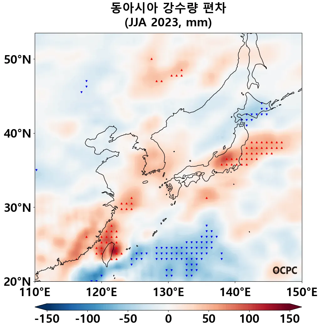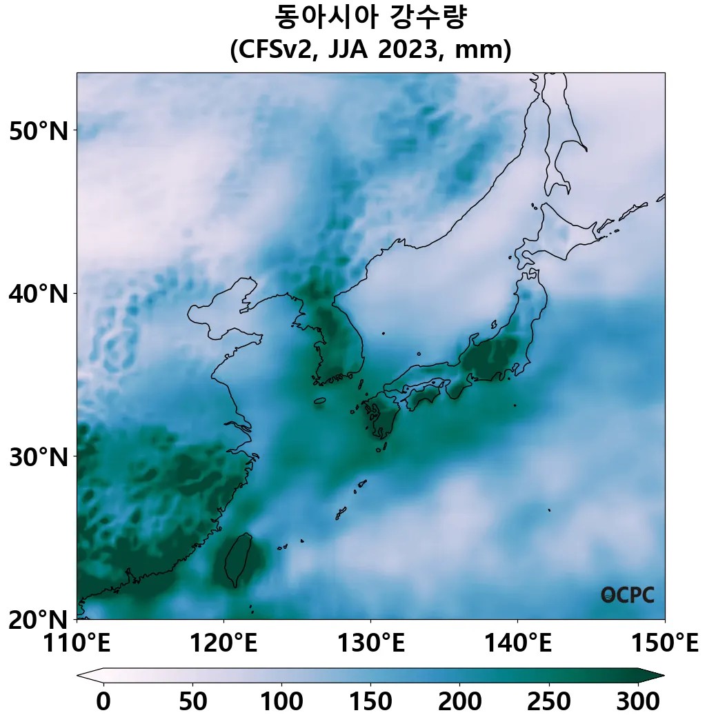 A. 동아시아 강수량 전망(2023년 6~8월 평균)