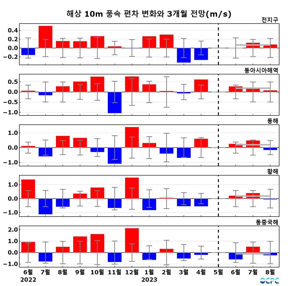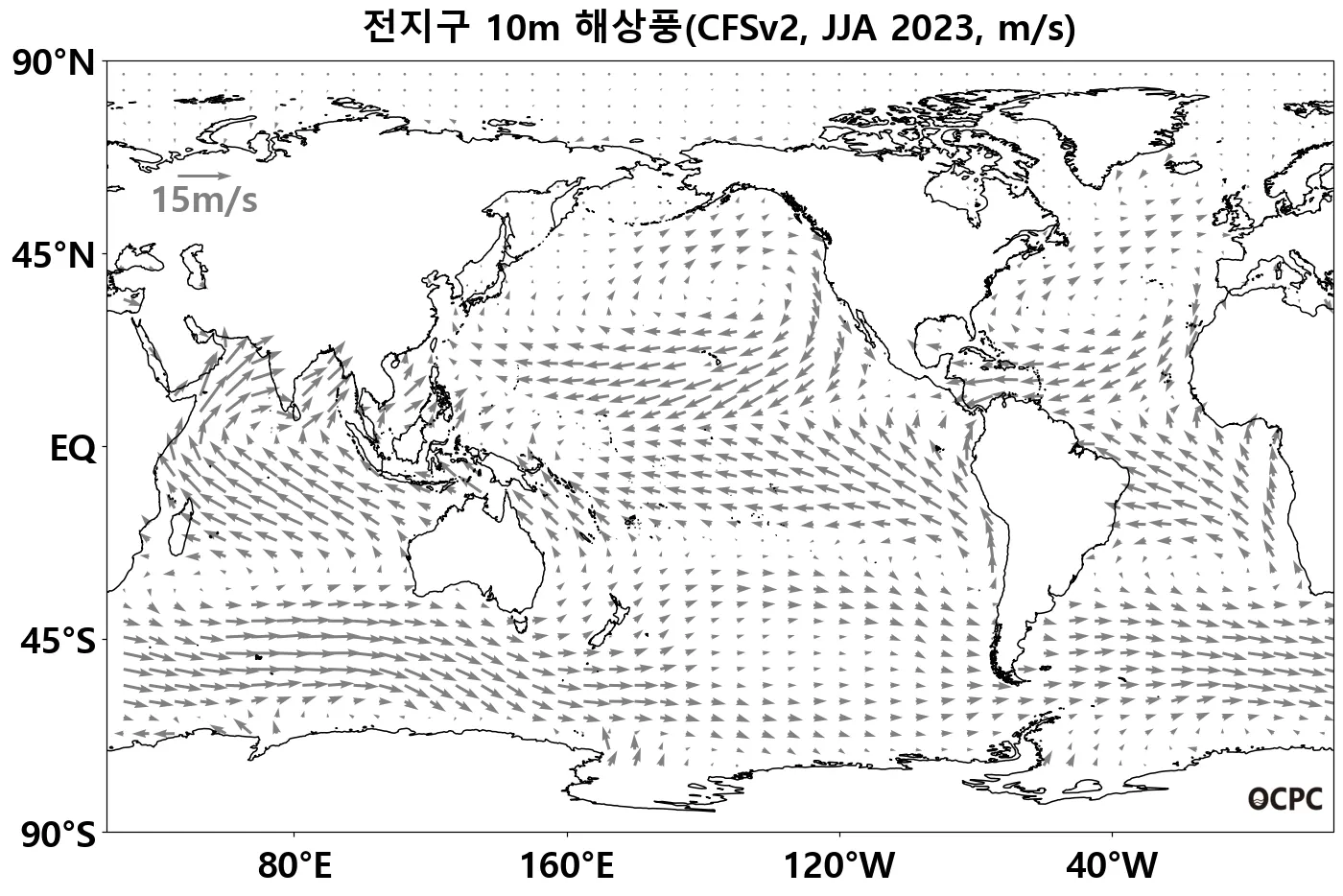 A. 전지구 해상풍 전망(2023년 6~8월 평균)
