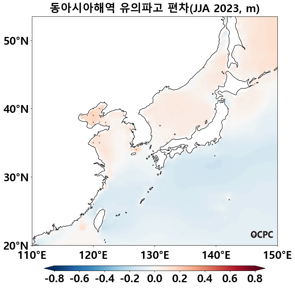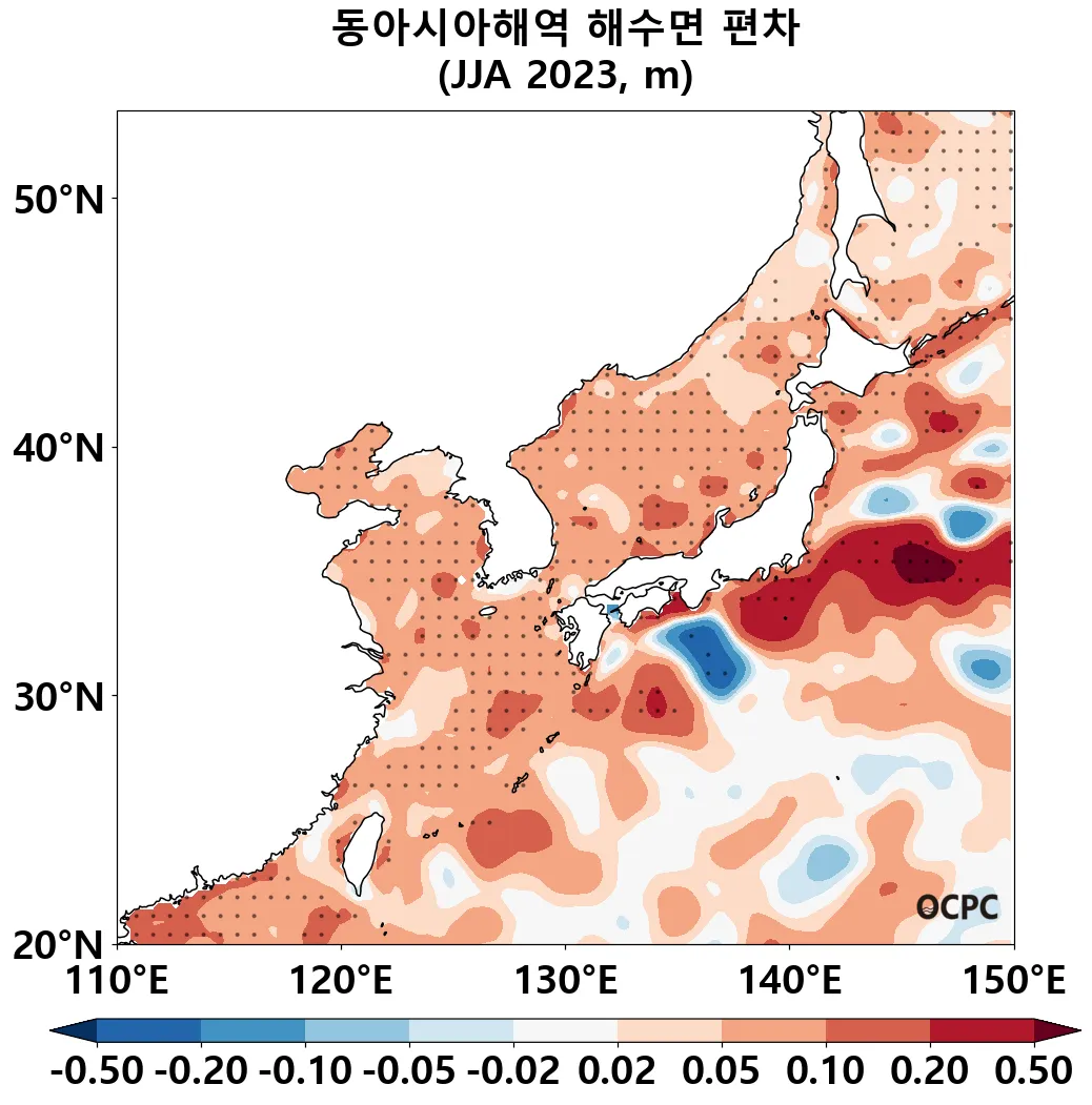 A. 동아시아해역 해수면 전망(2023년 6~8월 평균)