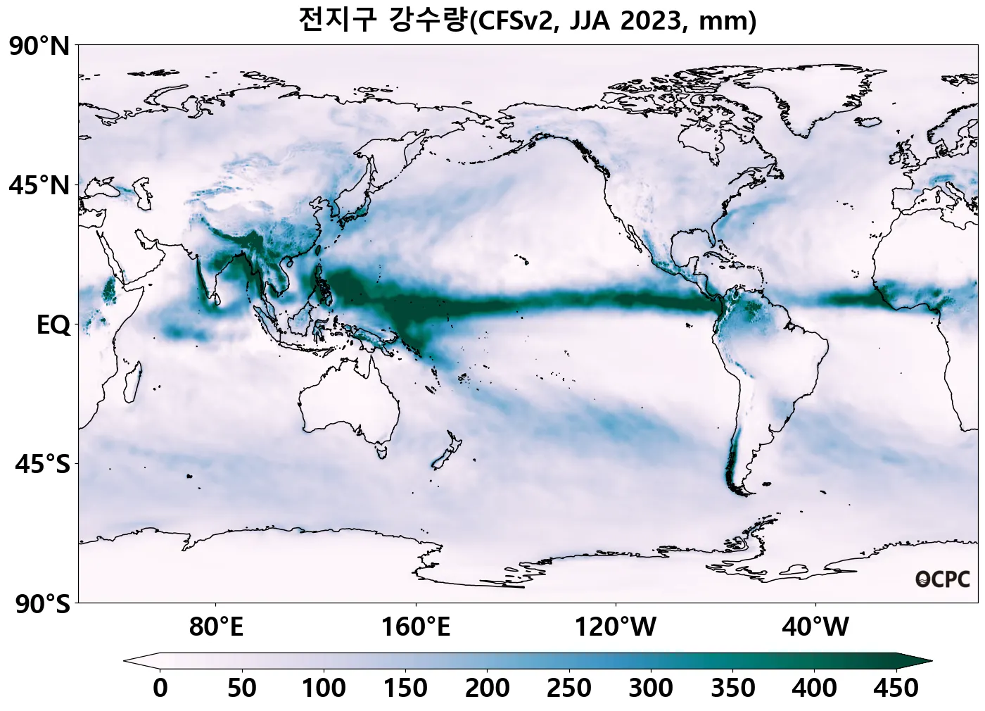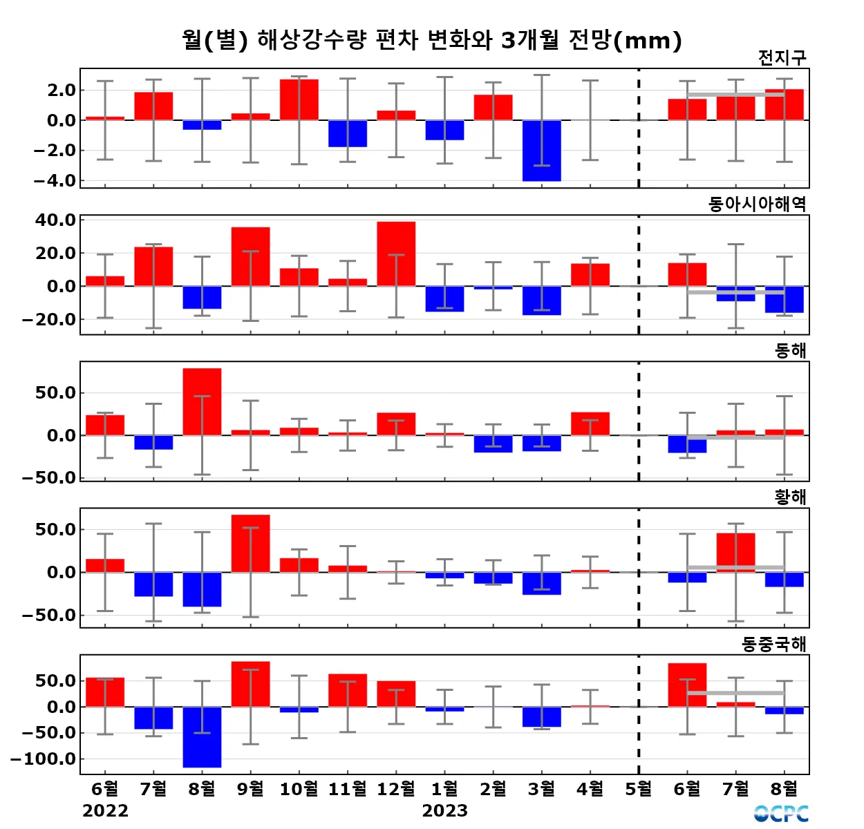 A. 전지구 강수량 전망(2023년 6~8월 평균)