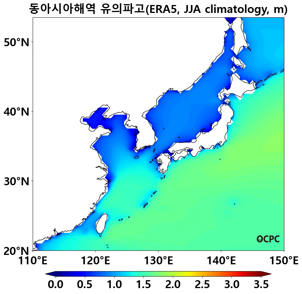 B. 동아시아해역 유의파고(평년 6~8월 평균)