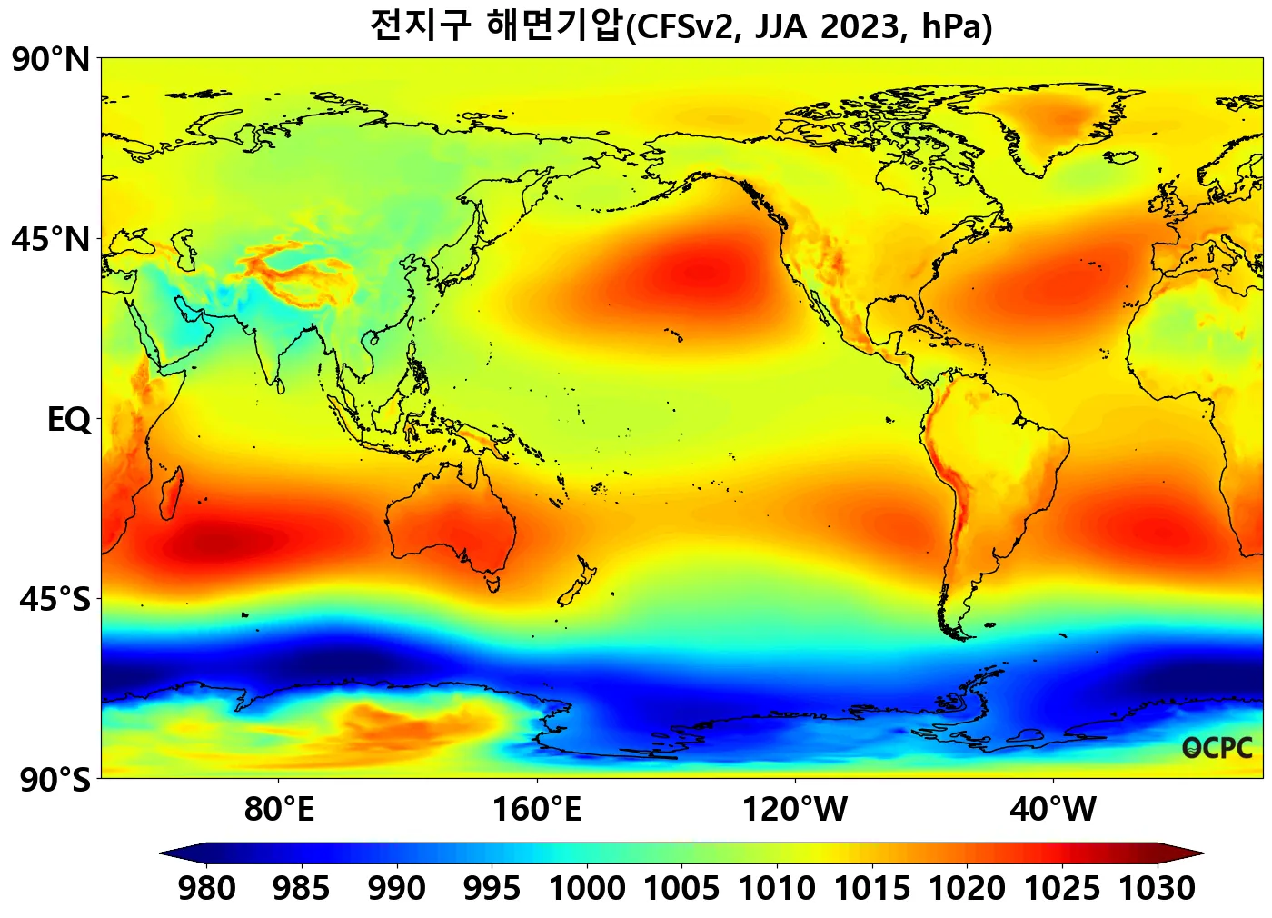 A. 전지구 해면기압 전망(2023년 6~8월 평균)