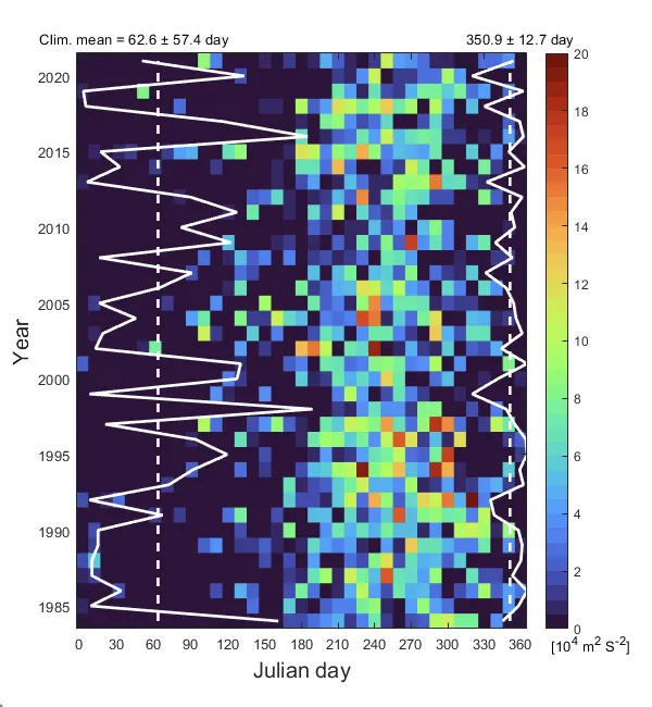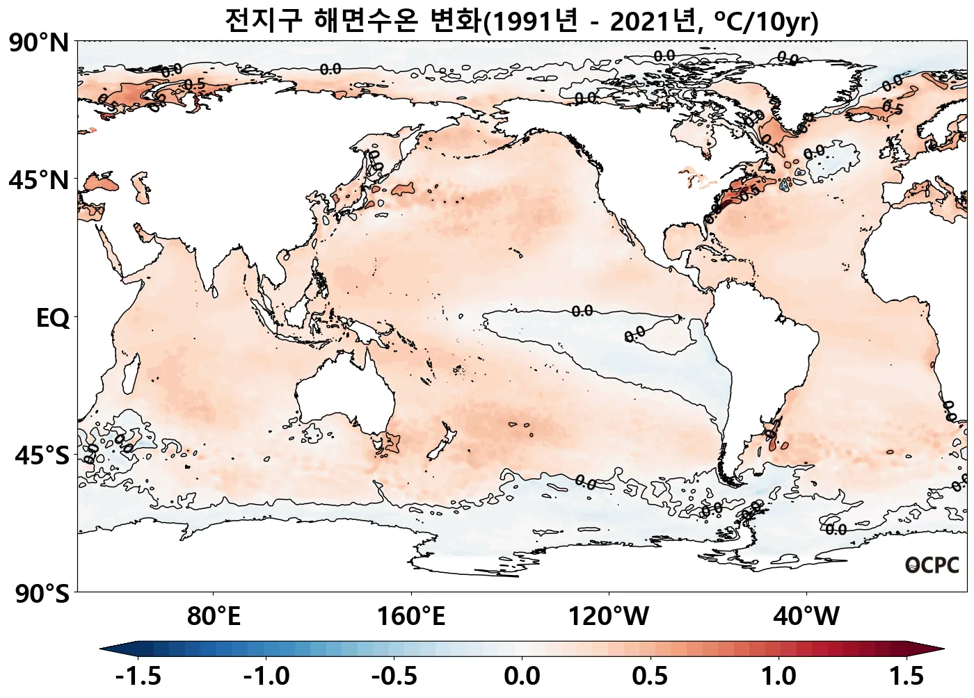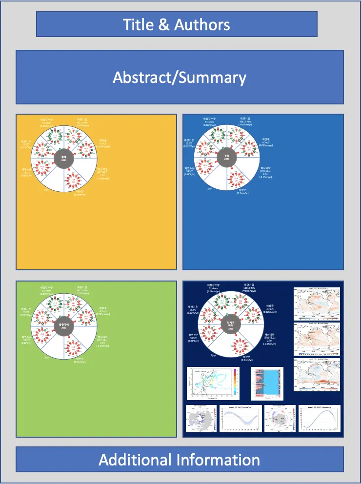 해양기후(Ocean Climate)를 해양 환경 및 생태계의 장기 평균 상태로 정의하고, 전지구 및 동아시아 해역에 대한 월평균 및 연평균 해양기후 대비 2021년 주요 해양기후 변수들의 월(연)평균 상태를 진단하고 그 추세를 분석하였다.