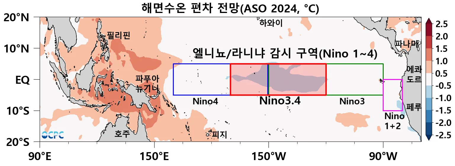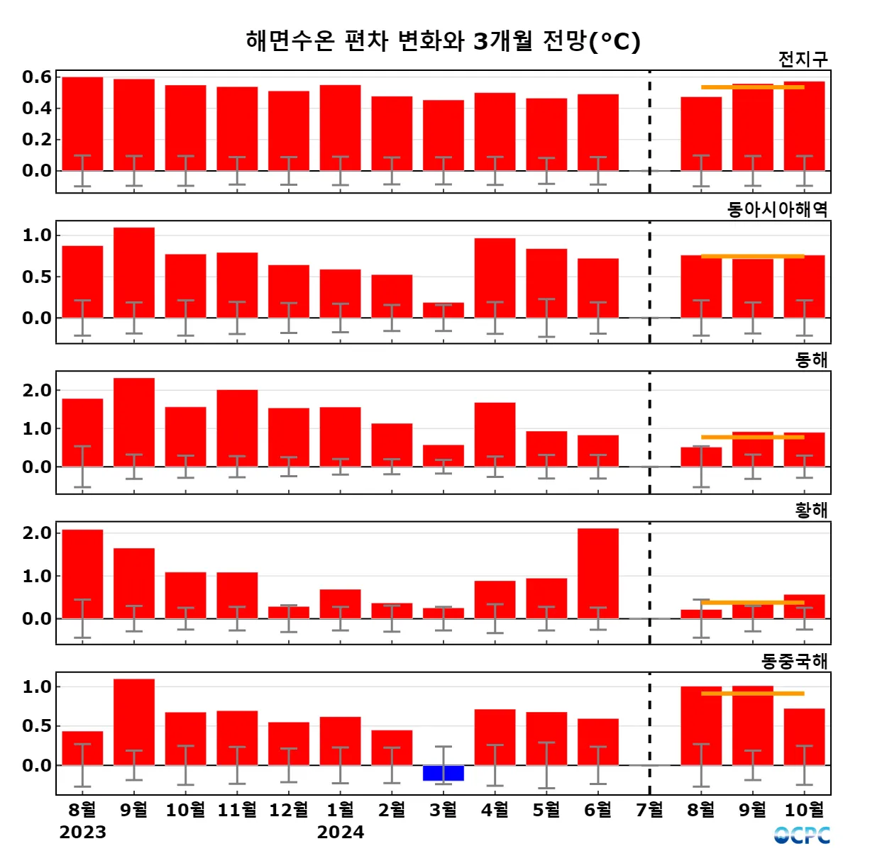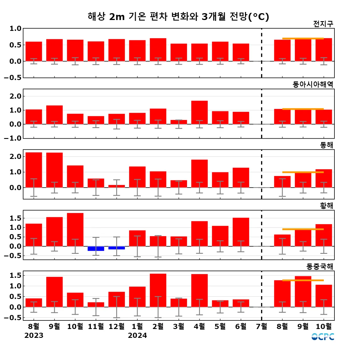 A. 전지구 해상기온 전망(2024년 8월~10월 평균)