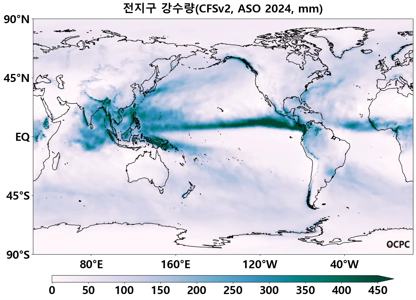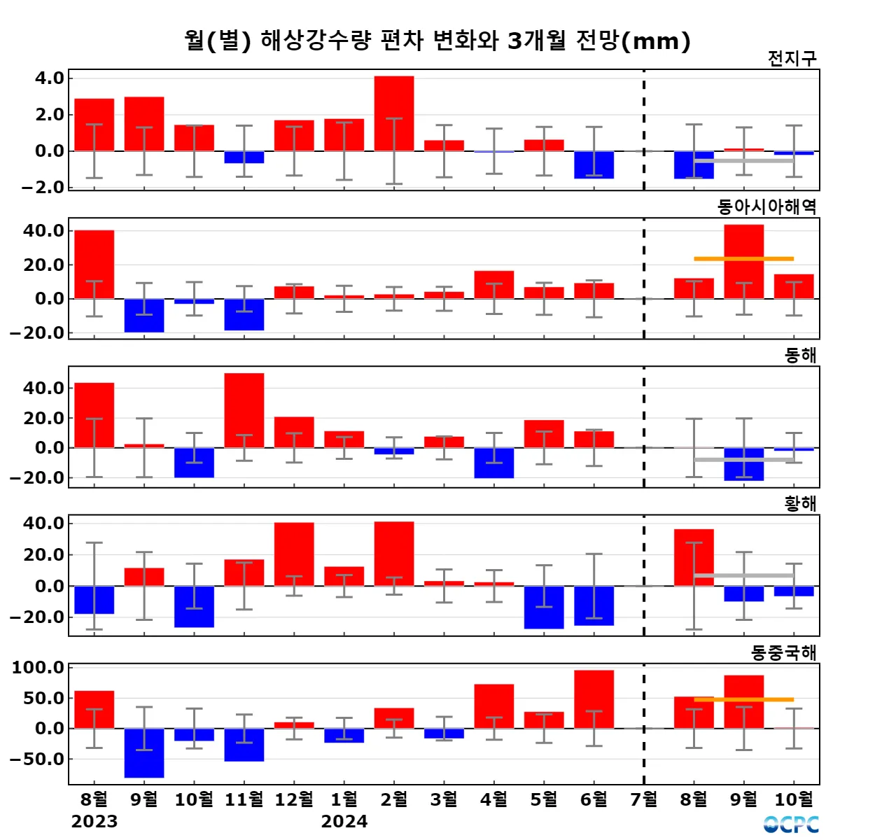 A. 전지구 강수량 전망(2024년 8월~10월 평균)