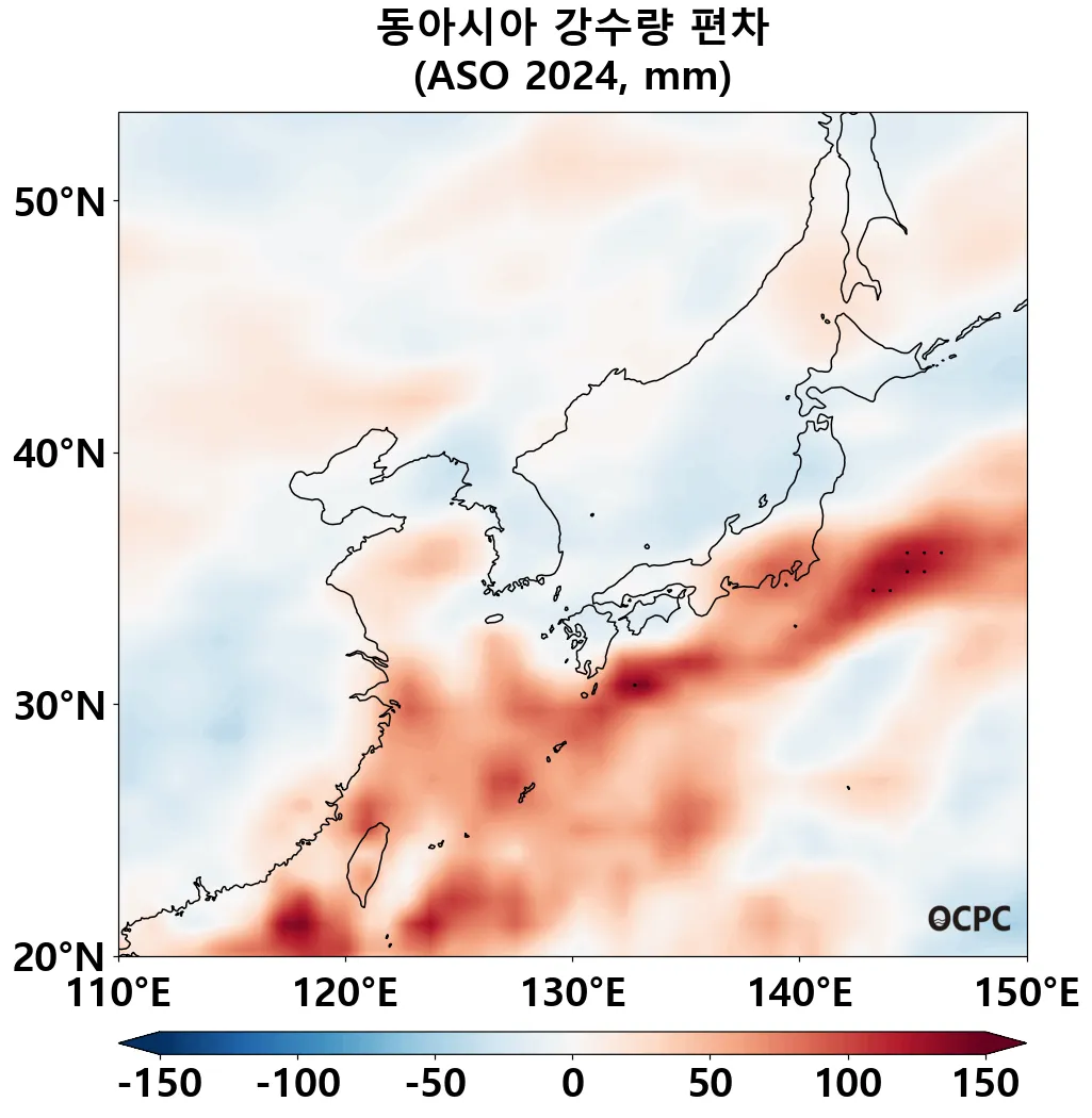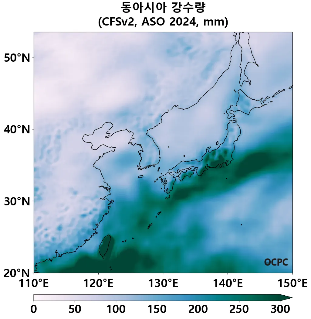 A. 동아시아 강수량 전망(2024년 8월~10월 평균)