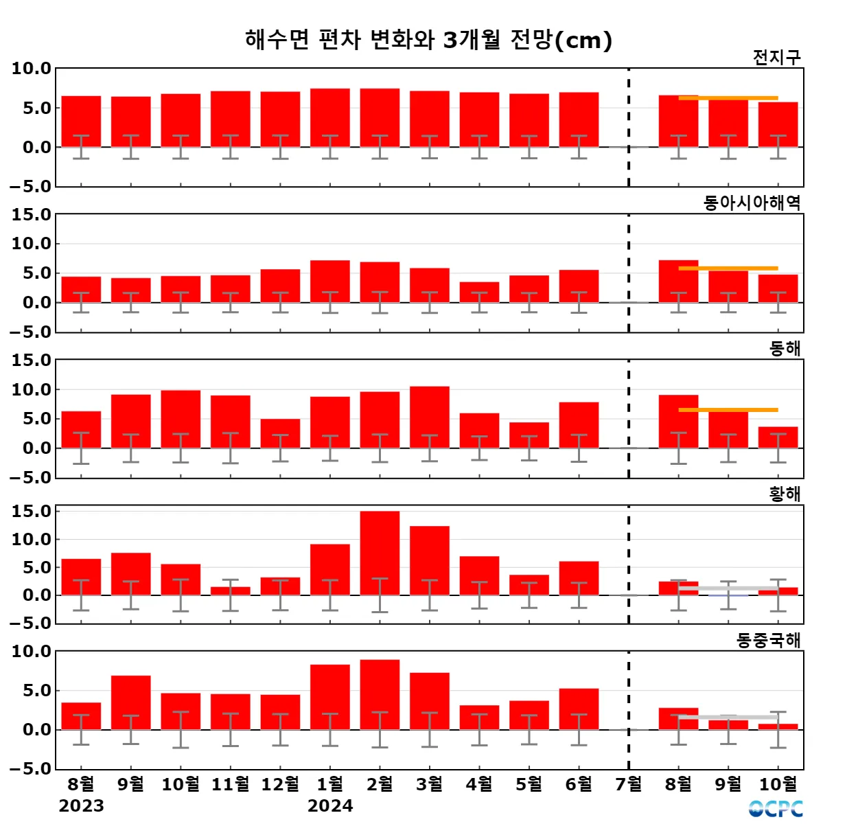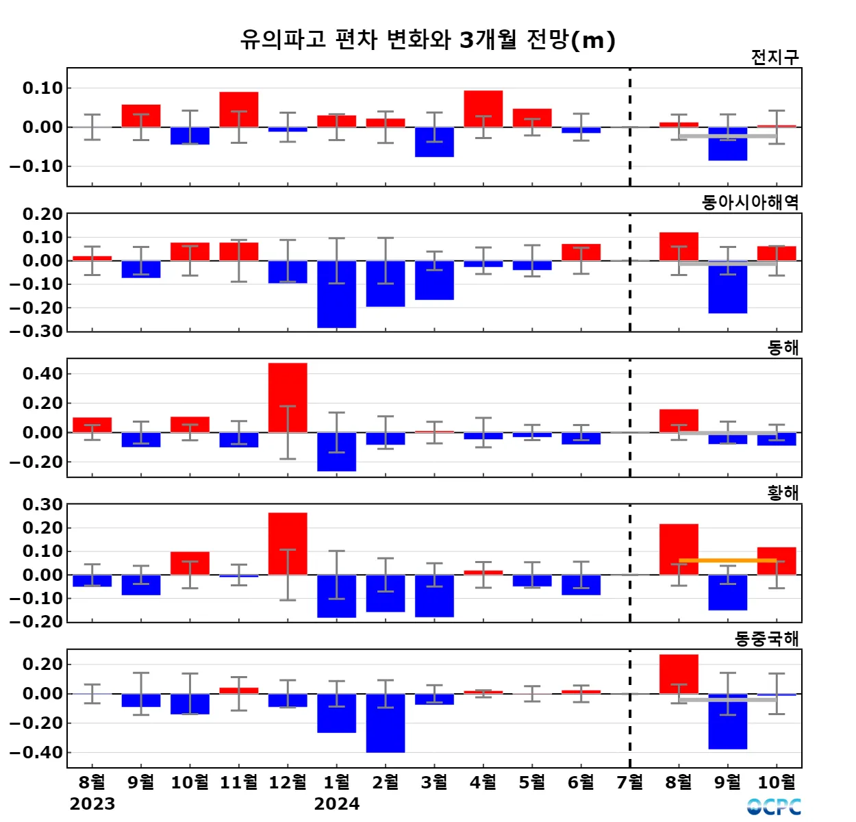 A. 전지구 해수면 전망(2024년 8월~10월 평균)