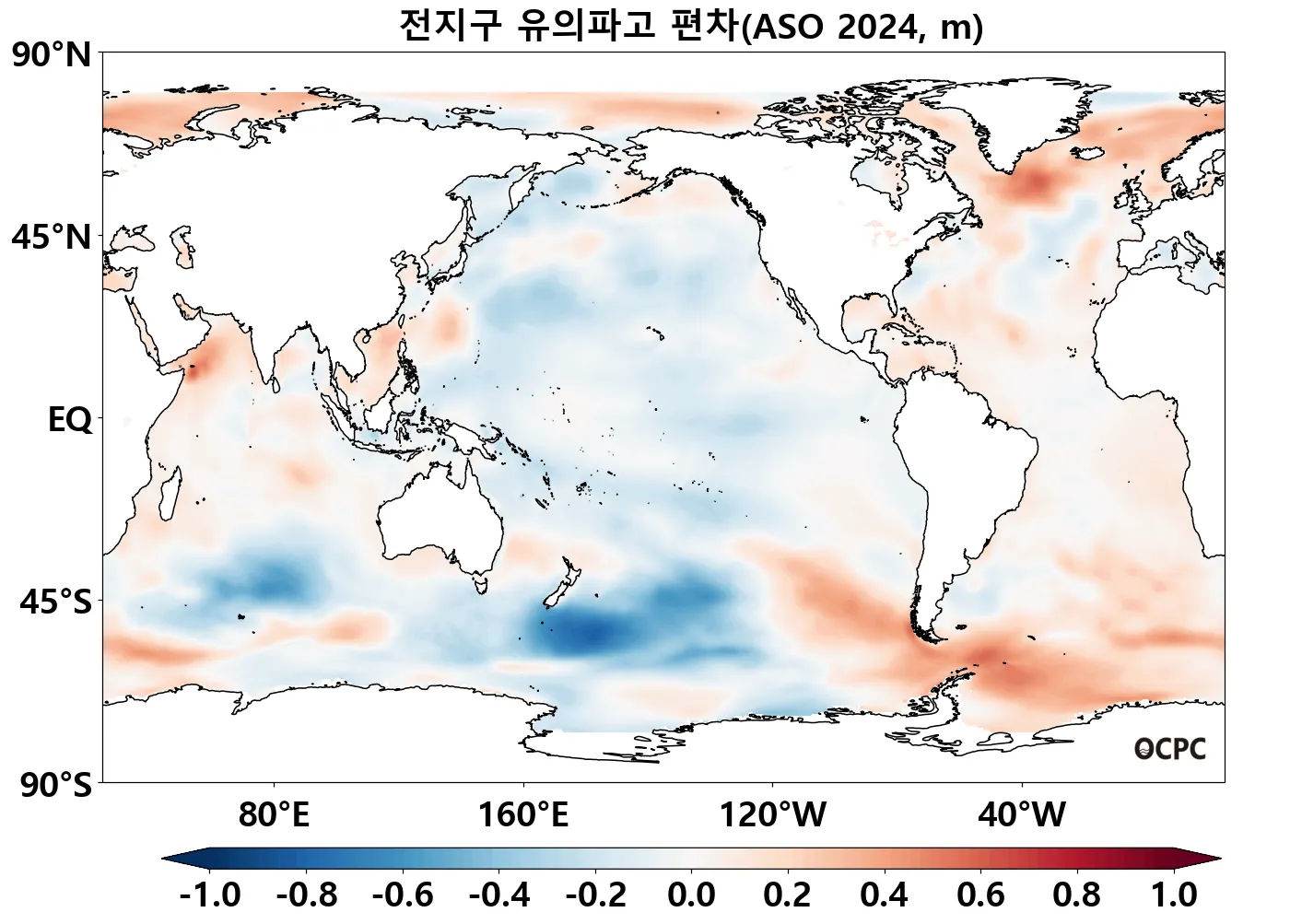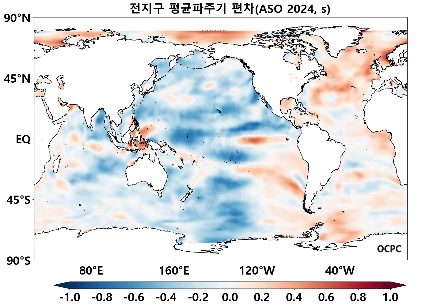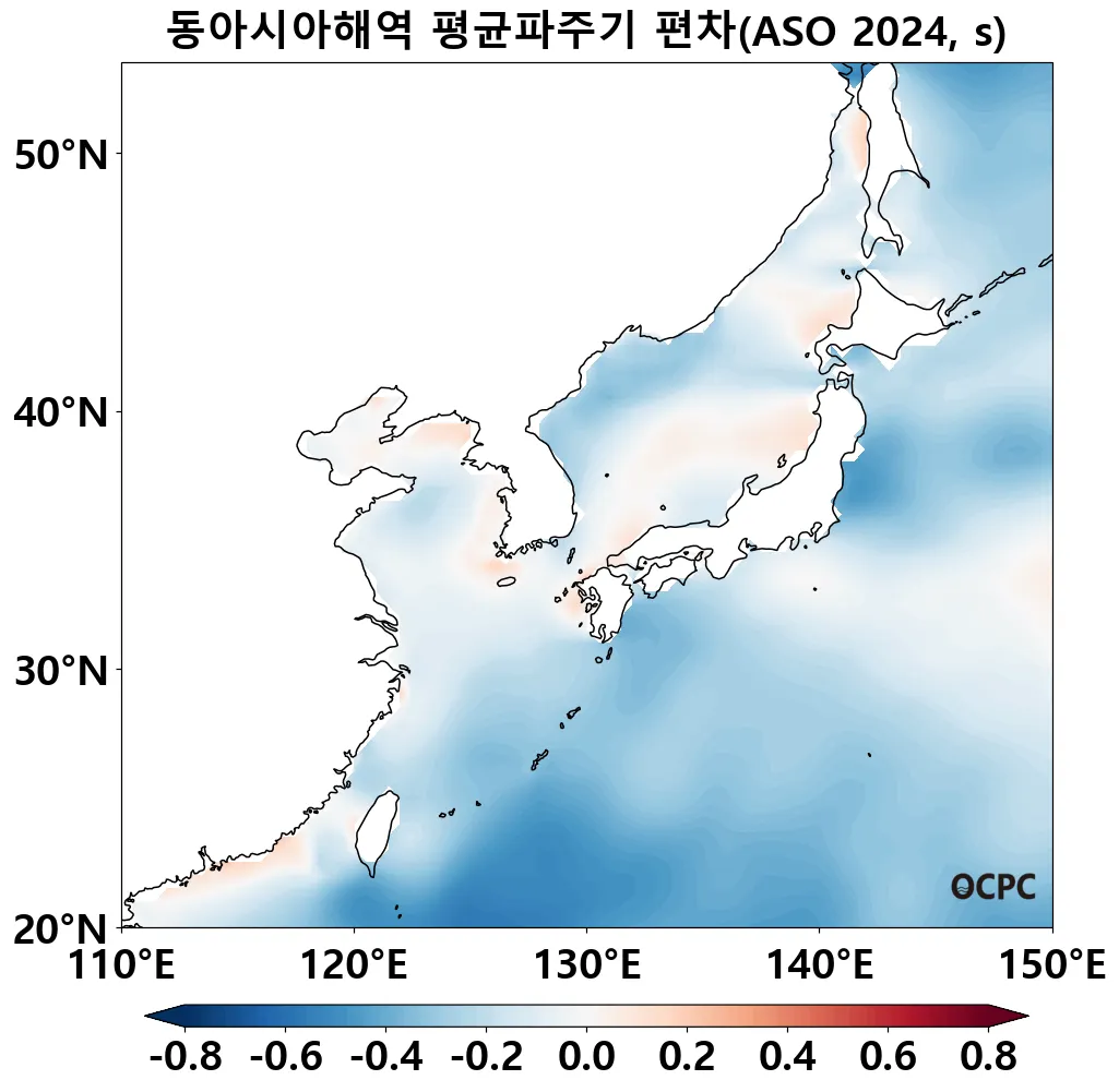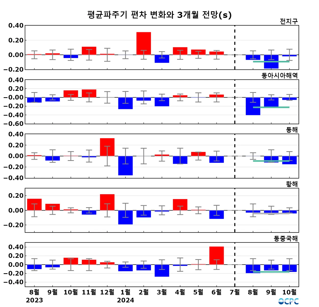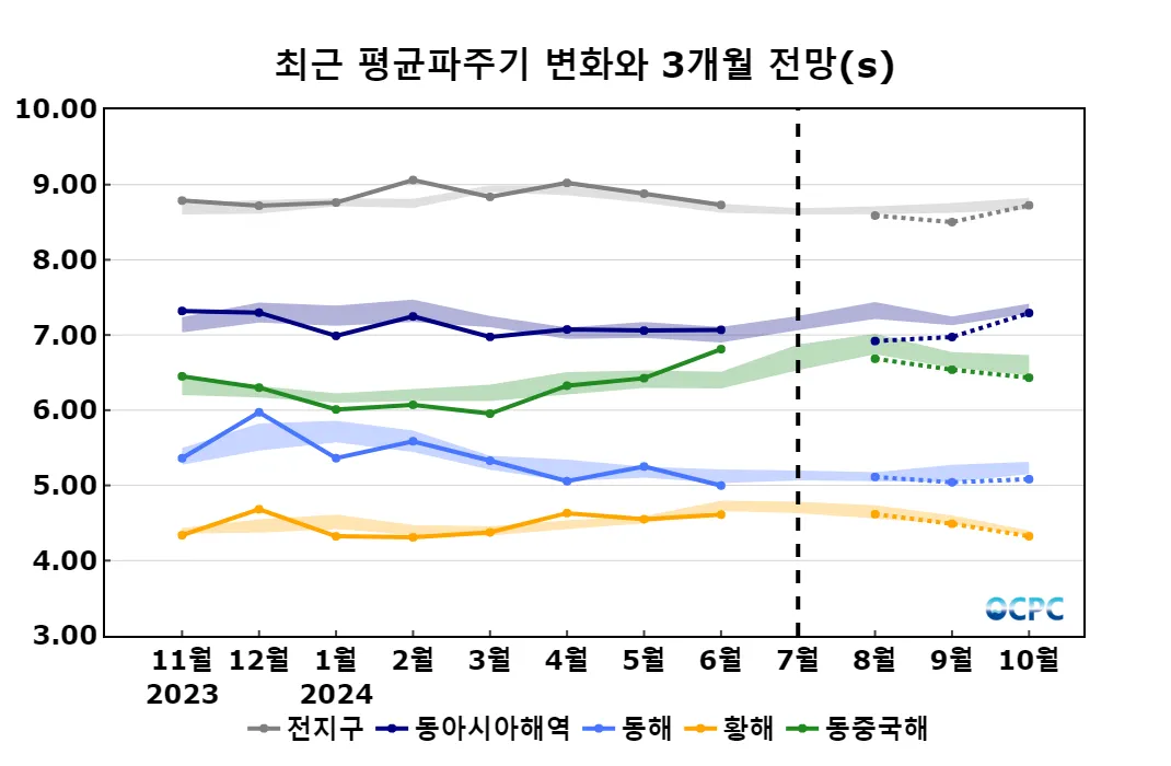 전지구 8~10월 평균파주기는 평년(8.70±0.07초)보다 0.09초 감소할 것으로 전망됩니다.