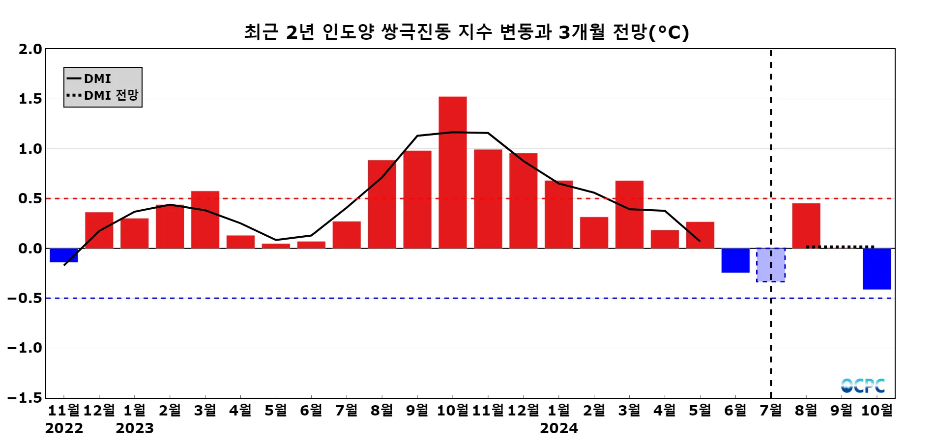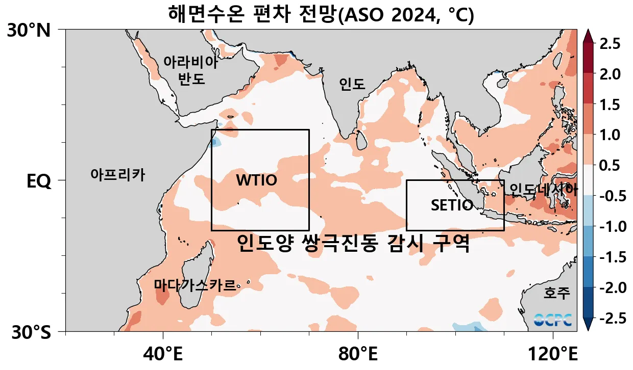 8~10월(ASO) 인도양 쌍극진동 지수는 0℃로 중립 상태일 것으로 전망됩니다.
