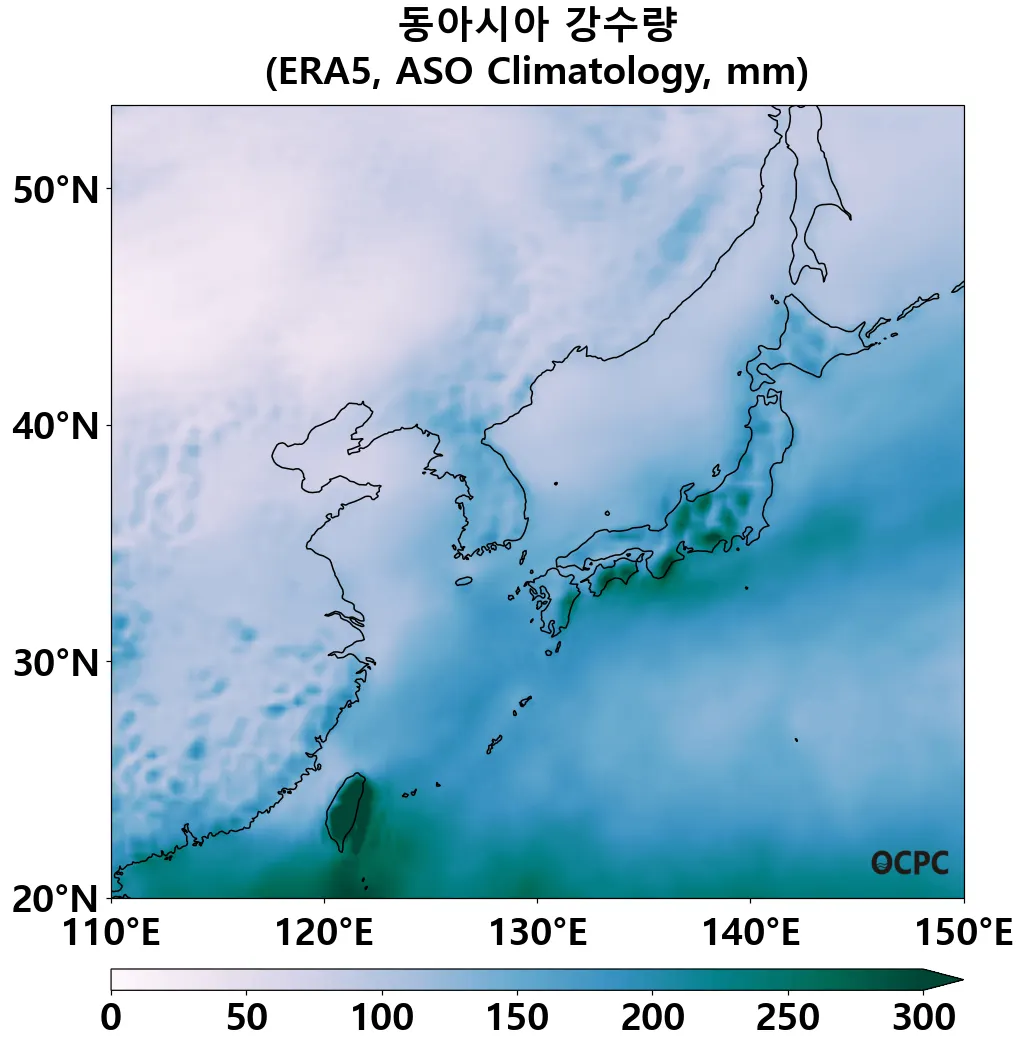 B. 동아시아 강수량(평년 8월~10월 평균)