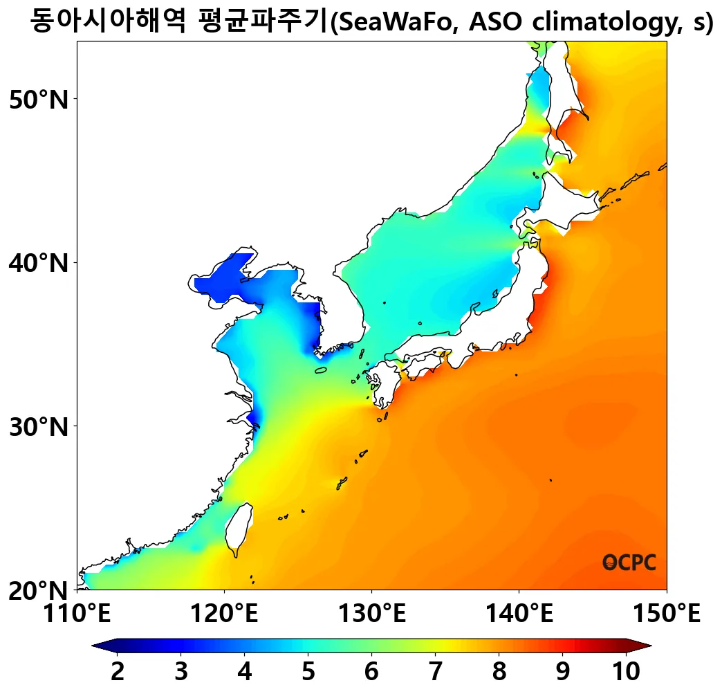 B. 동아시아해역 평균파주기(평년 8월~10월 평균)