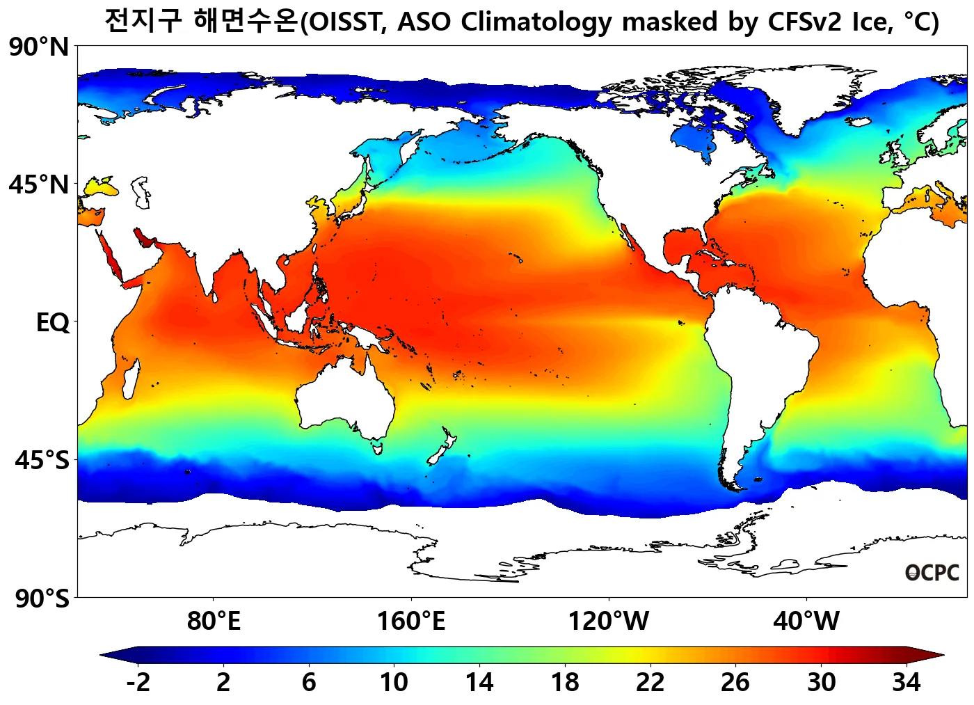 B. 전지구 해면수온(평년 8월~10월 평균), 예상 해빙 해역 제외