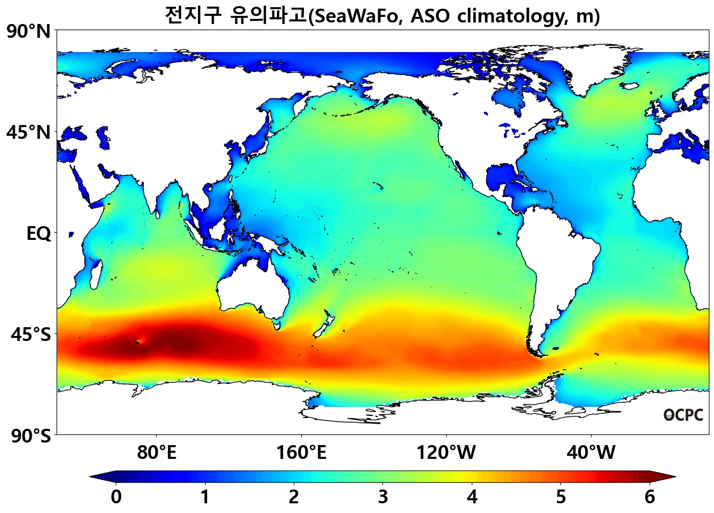 파랑(유의파고, 평균파주기) 자료를 ERA5에서 자체 모델(SeaWaFo)로 변경하였습니다. (평년: 2014~2023년)(2024.05.31)