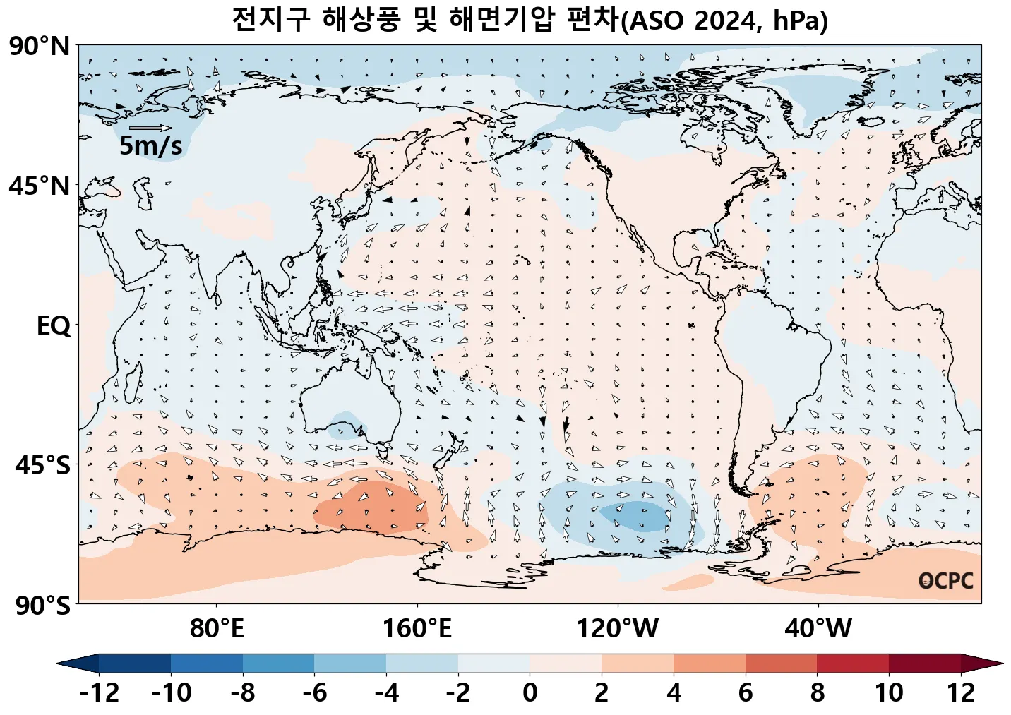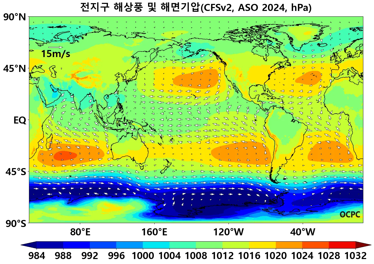 A. 전지구 해상풍 및 해면기압 전망(2024년 8월~10월 평균)