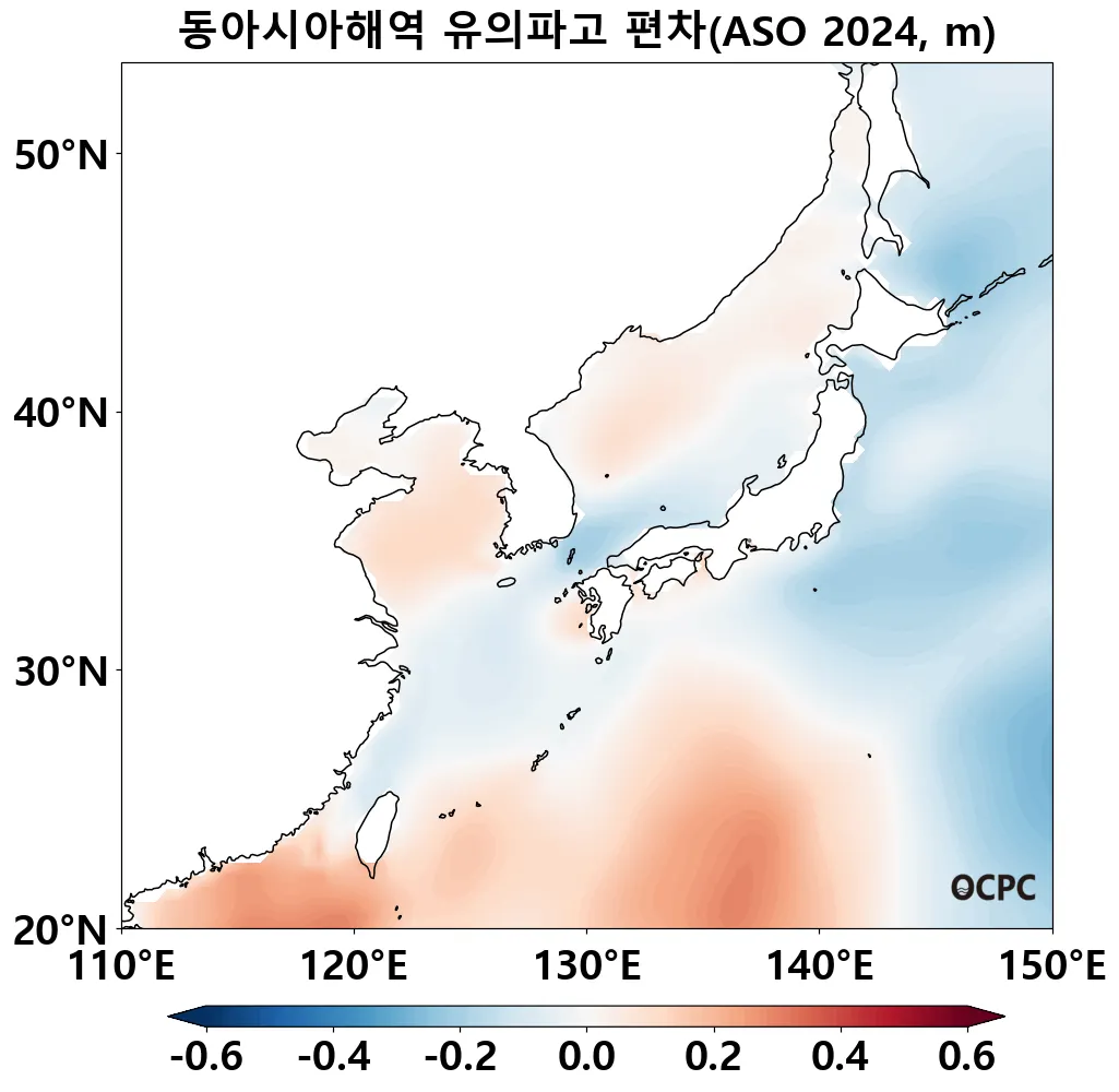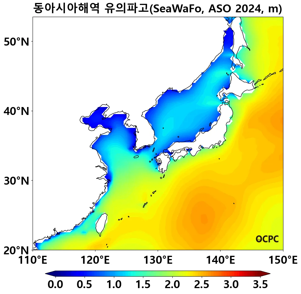 A. 동아시아해역 유의파고 전망(2024년 8월~10월 평균)