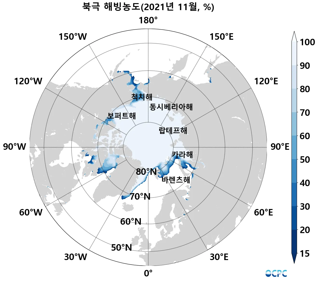 해빙농도 15% 이상 해역