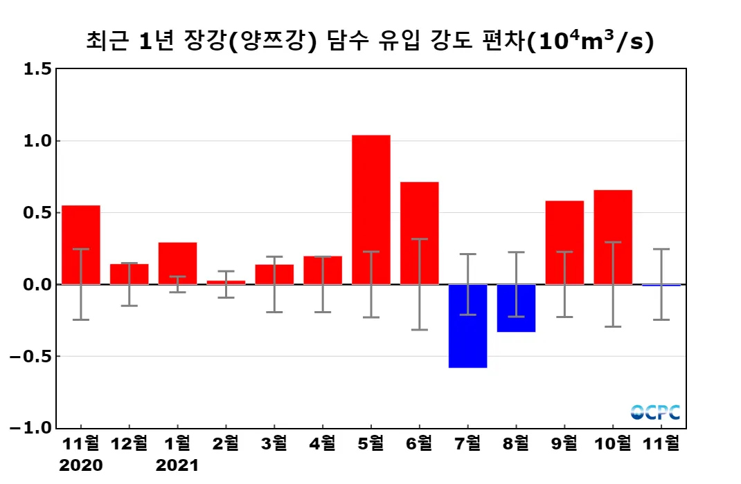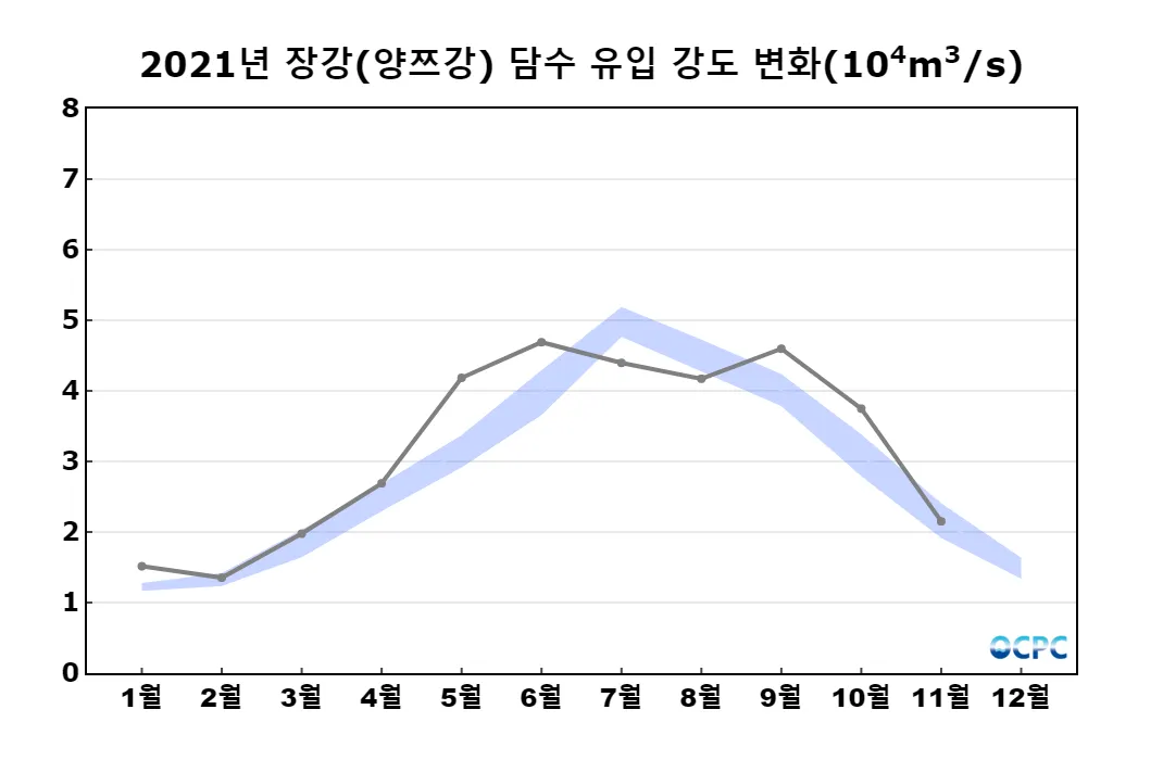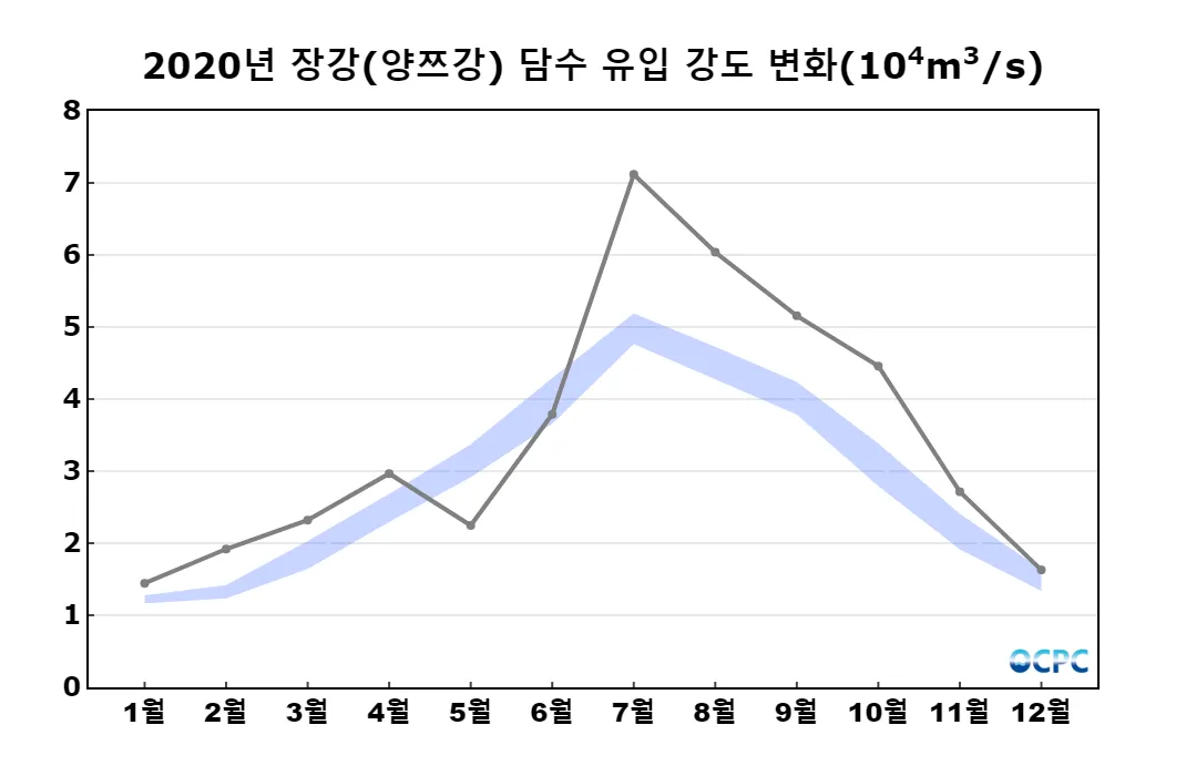 중국 장강(양쯔강)으로부터의 담수 유입량은 평년과 비슷했습니다.
