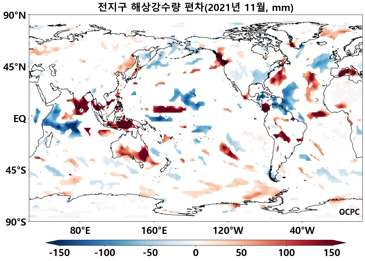 전지구 및 한국주변해역 11월 해상강수량은 평년(89.4mm, 107.2mm)과 비슷했습니다.