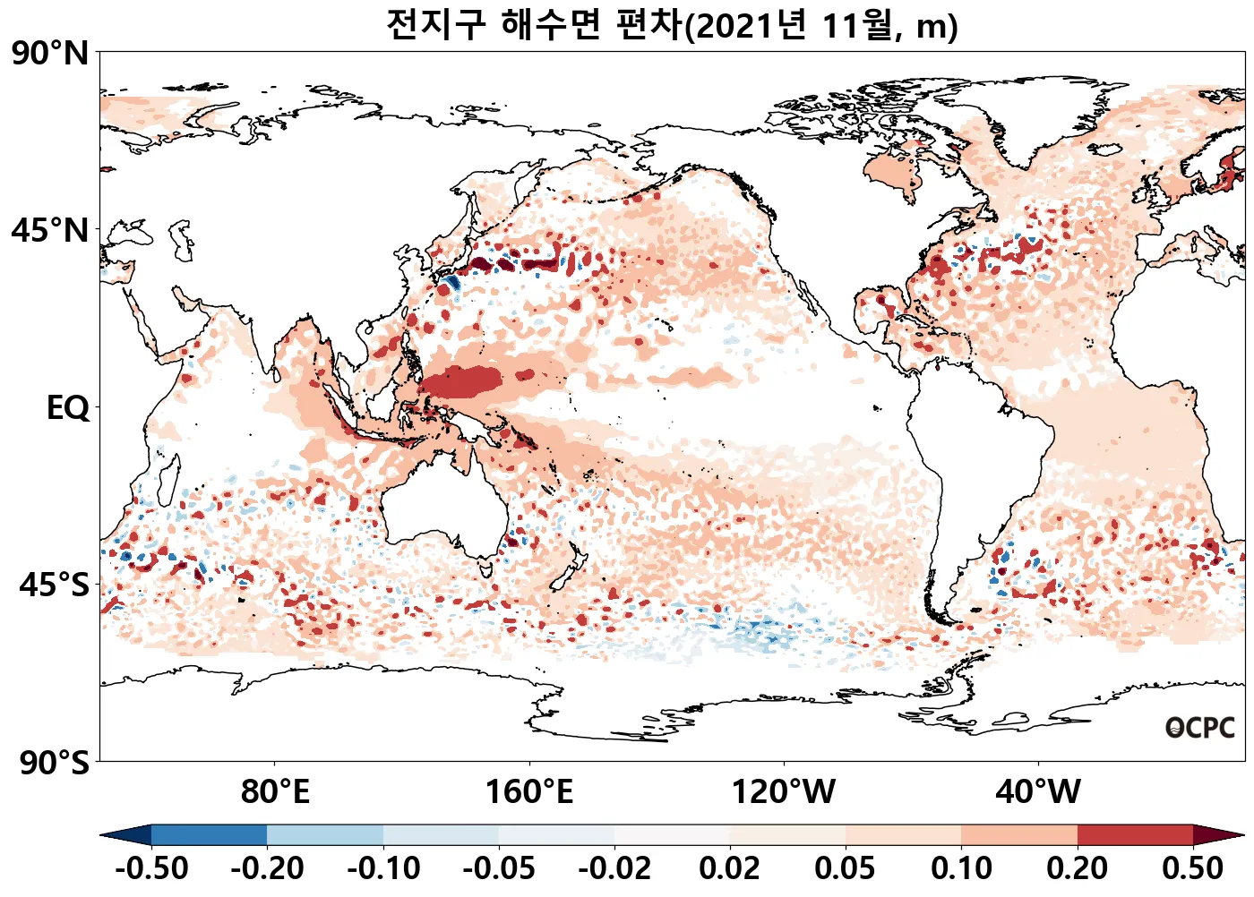 전지구 평균 해수면은 평년보다 6.1cm 높았고, 열대 서태평양 해역의 상승이 두드러졌습니다.