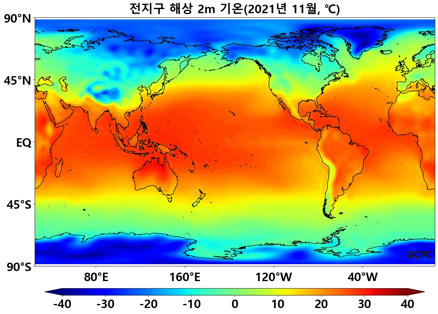 북태평양 중위도(20°N~40°N) 해역과 남태평양/남인도양 중위도(20°S~40°S) 해역의 해상기온이 평년보다 높았습니다.