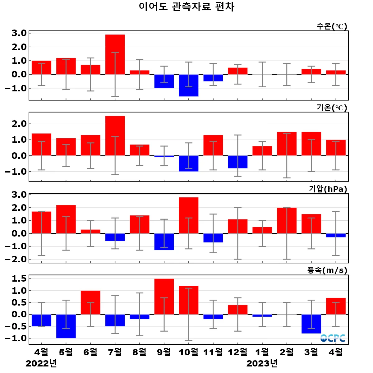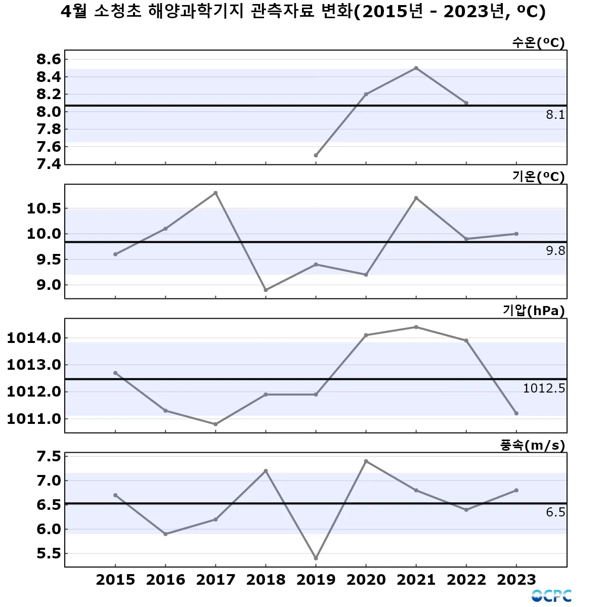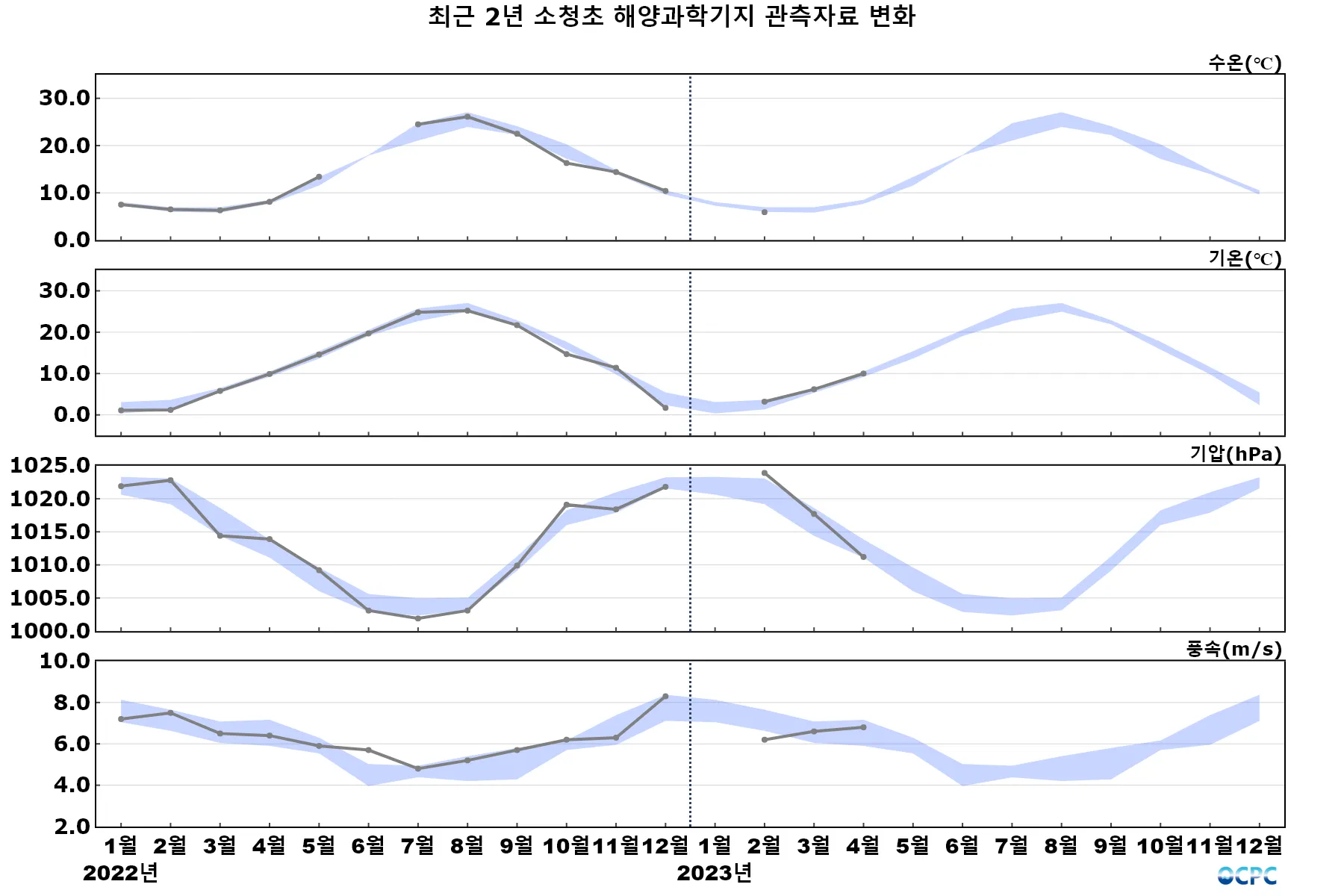 ※ 본 ‘해양과학기지 자료 분석 (2023년 4월)’은 분석은 국립해양조사원에서 제공하는 해양과학기지 관측자료를 사용하였음