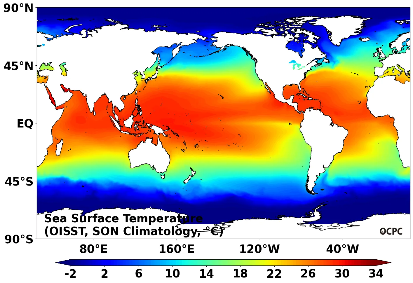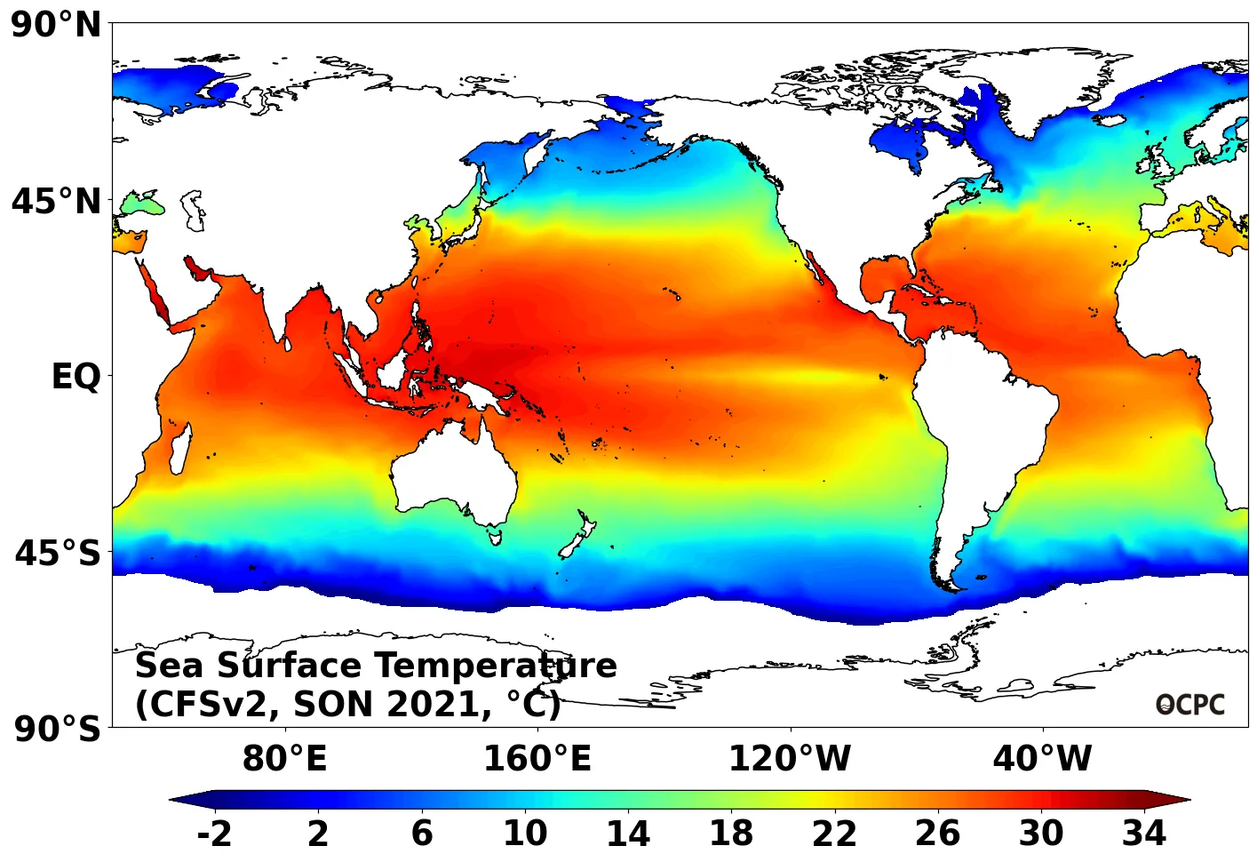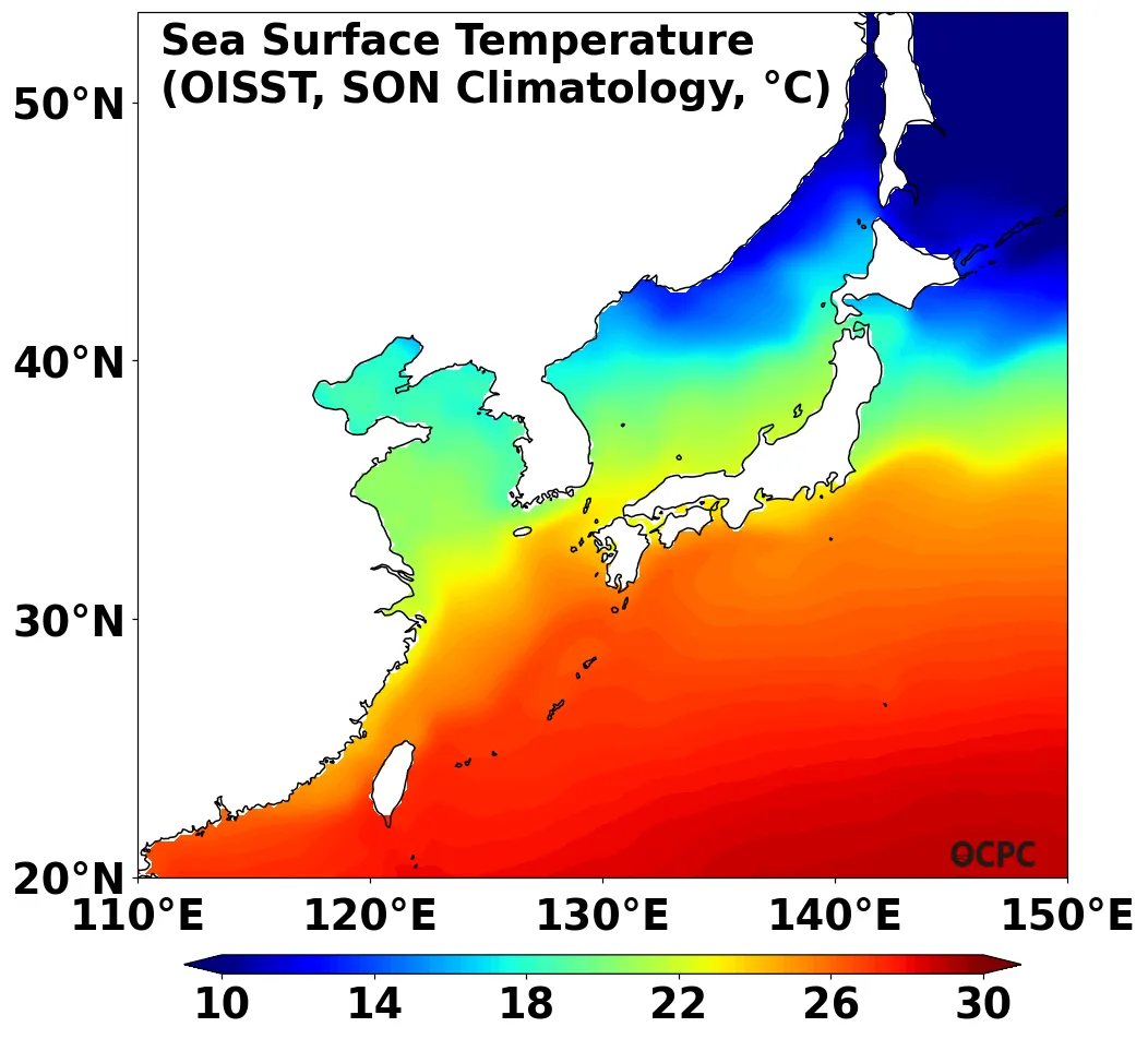 B. 전지구 해면수온(9~11월 평년평균)
