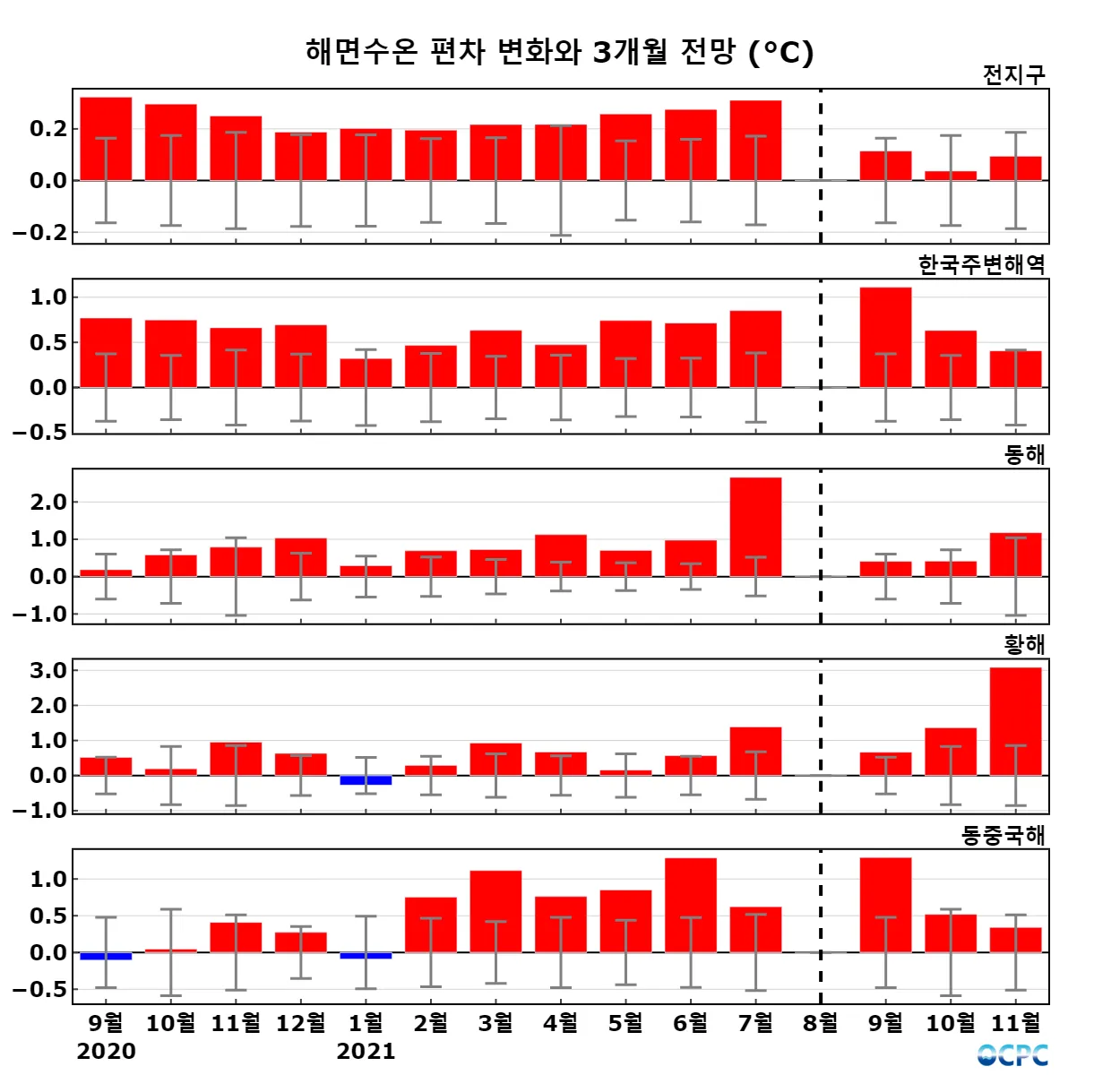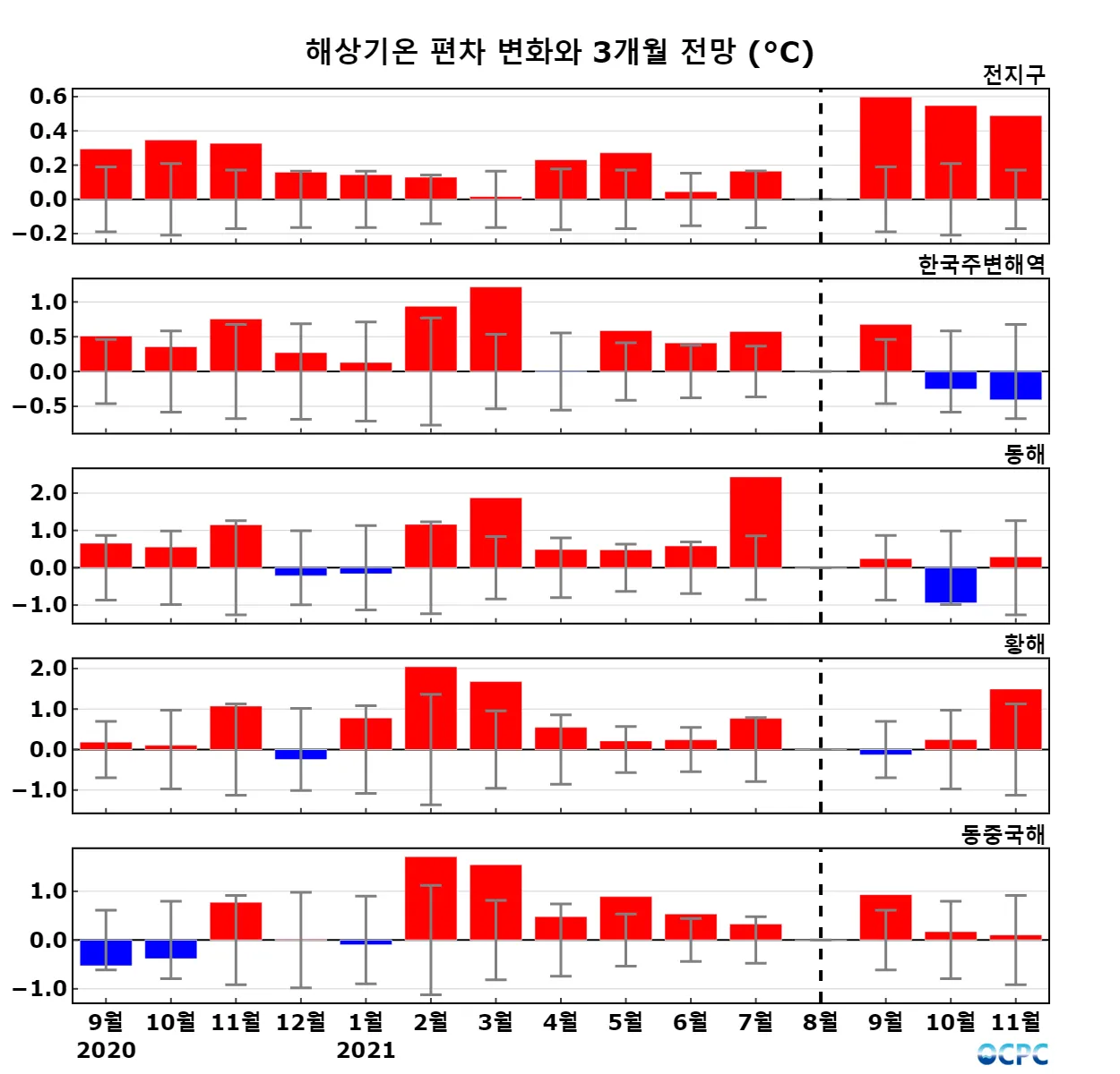 A. 전지구 해상기온 전망(2021년 9~11월 평균)
