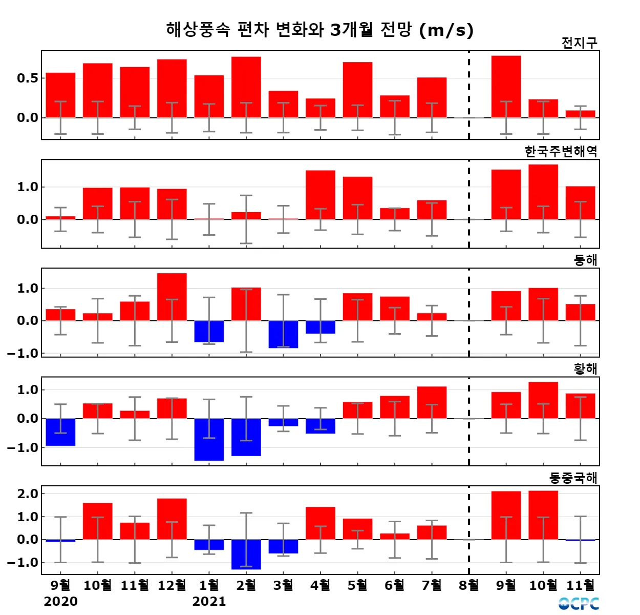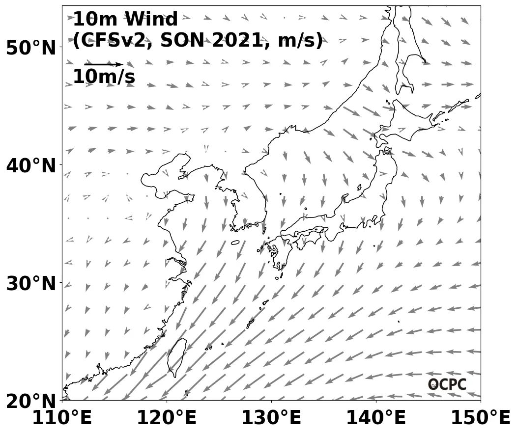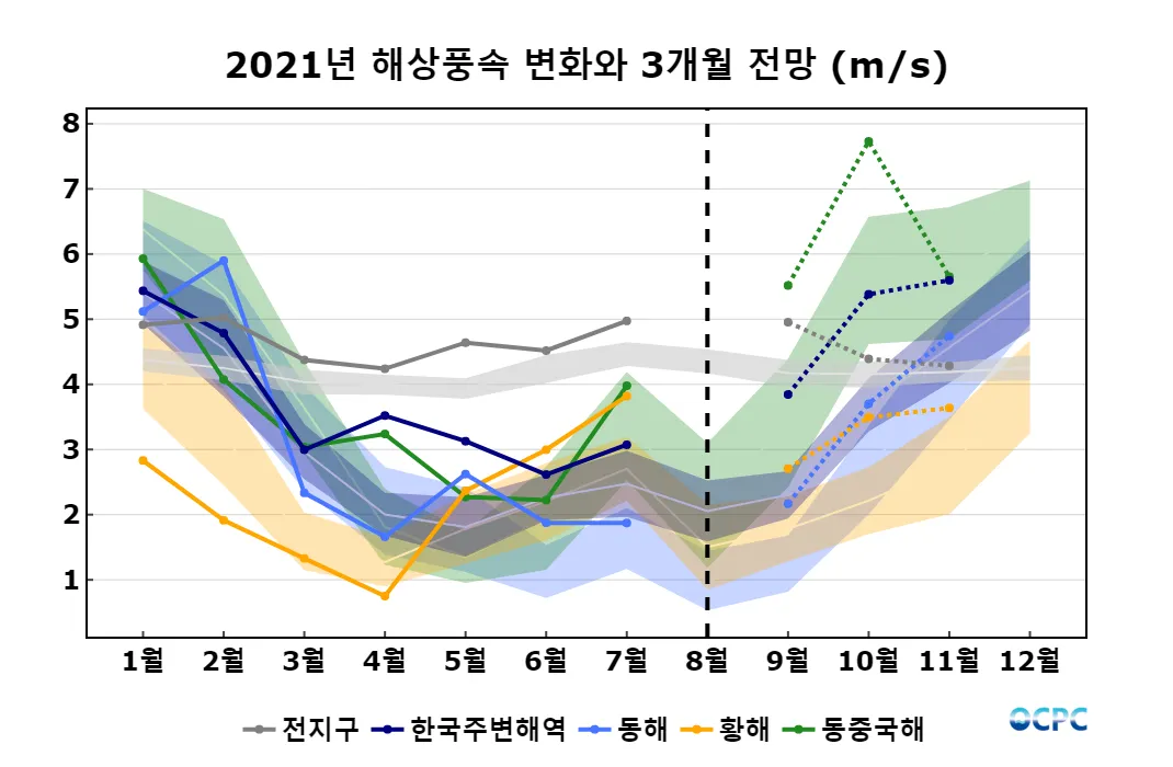 A. 전지구 해상풍 전망(2021년 9~11월 평균)