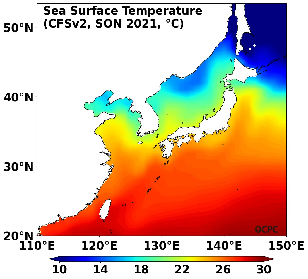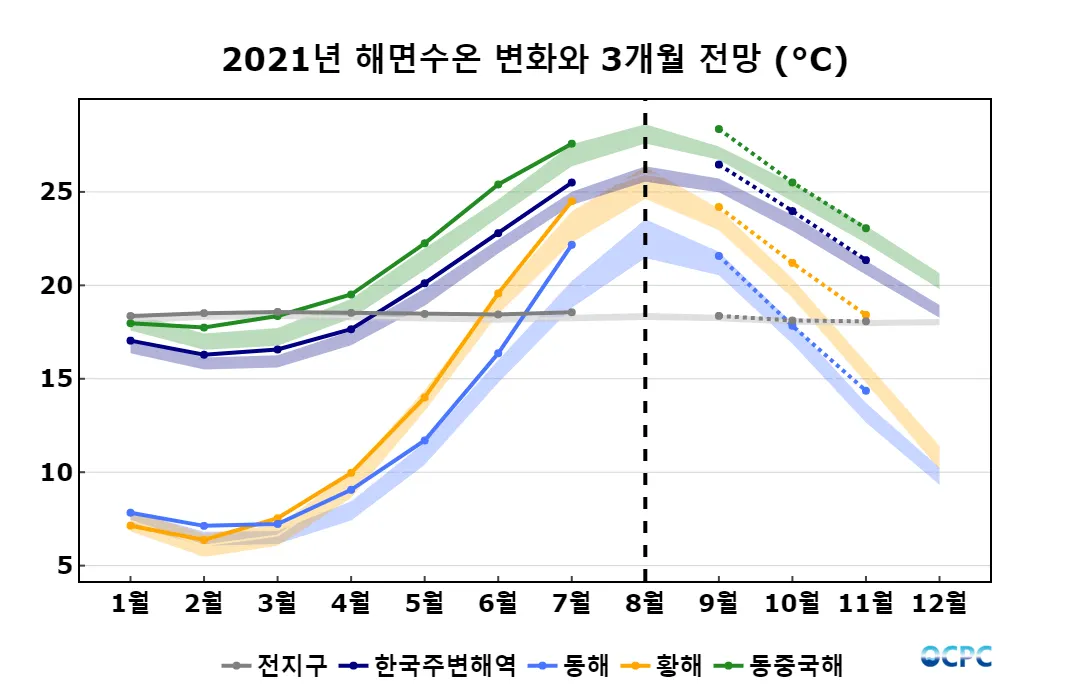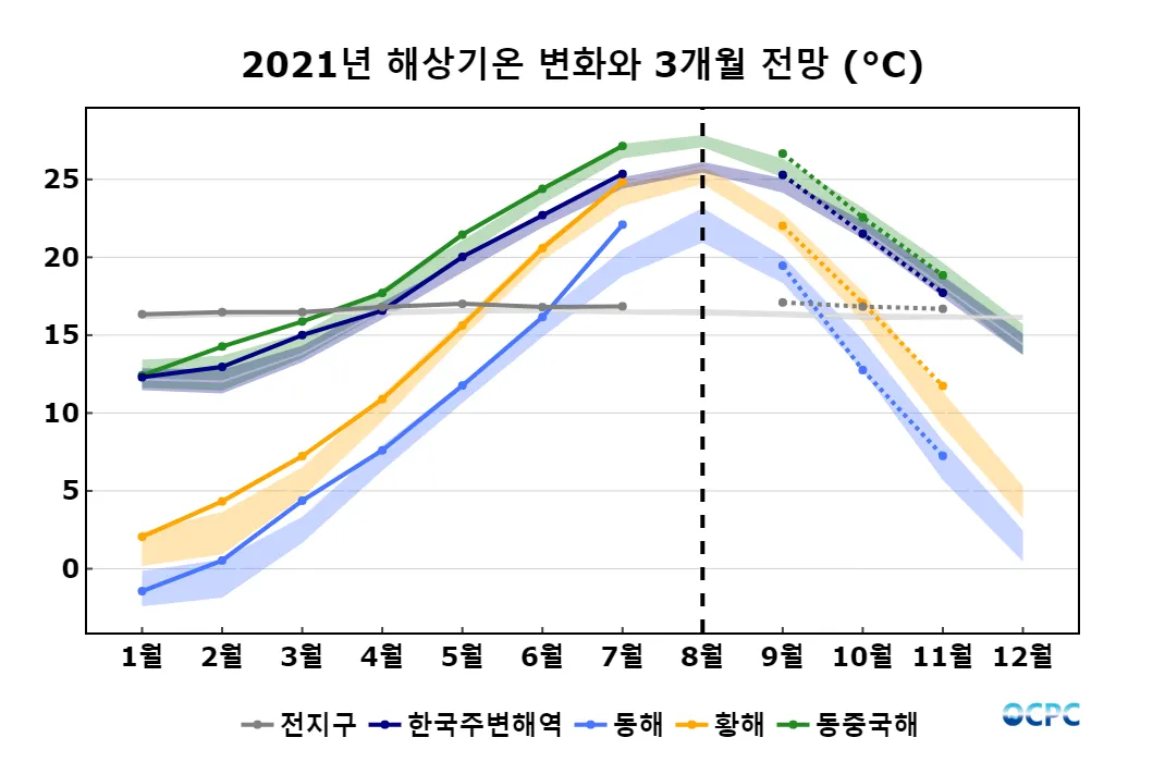 A. 한국주변해역 해상기온 전망(2021년 9~11월 평균)