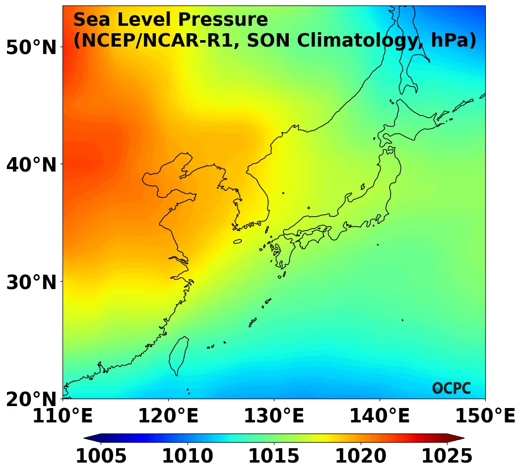 B. 한국주변해역 해면기압(9~11월 평년평균)