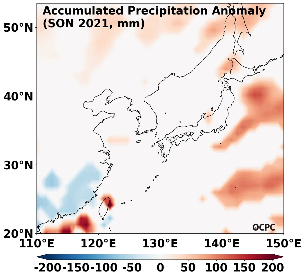 A. 전지구 누적강수량 전망(2021년 9~11월 평균)