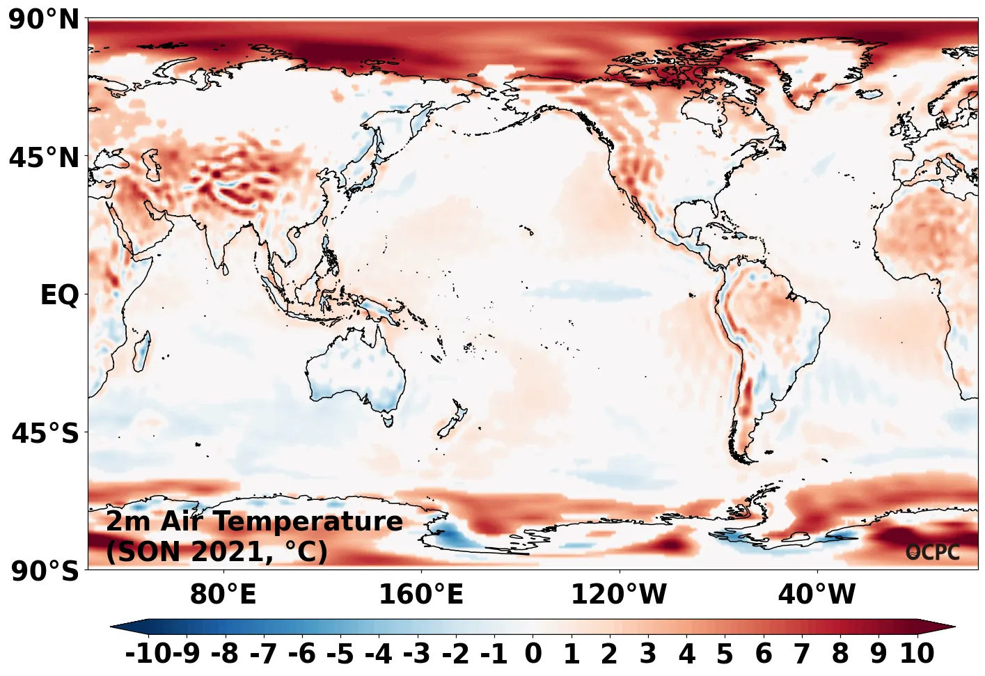 A-B. 전지구 해상기온 편차 전망(2021년 9~11월 평균, 채색표시: 평년 표준편차 초과 해역)