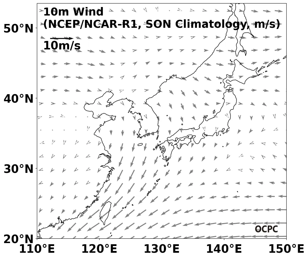 B. 한국주변해역 해상풍(9~11월 평년평균)
