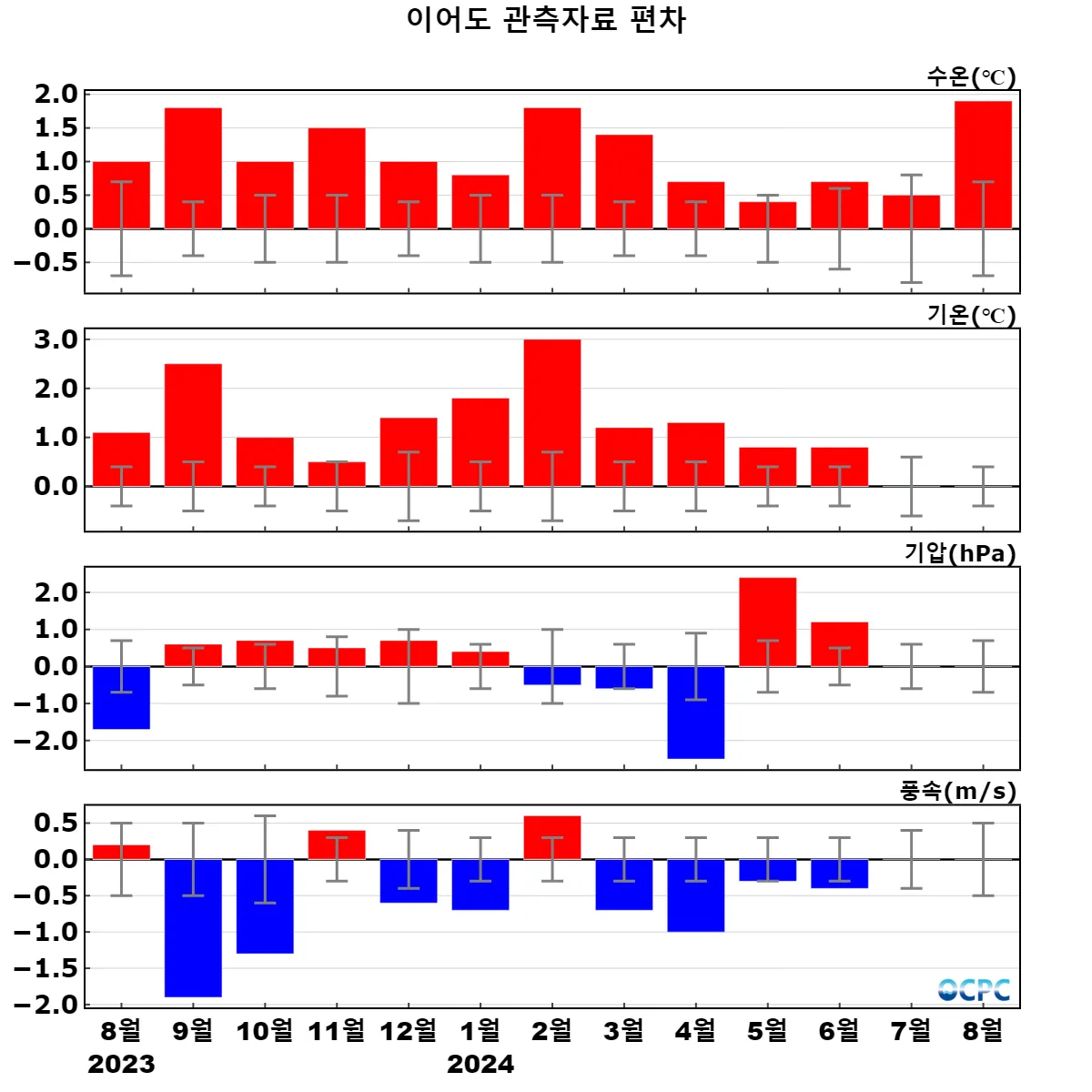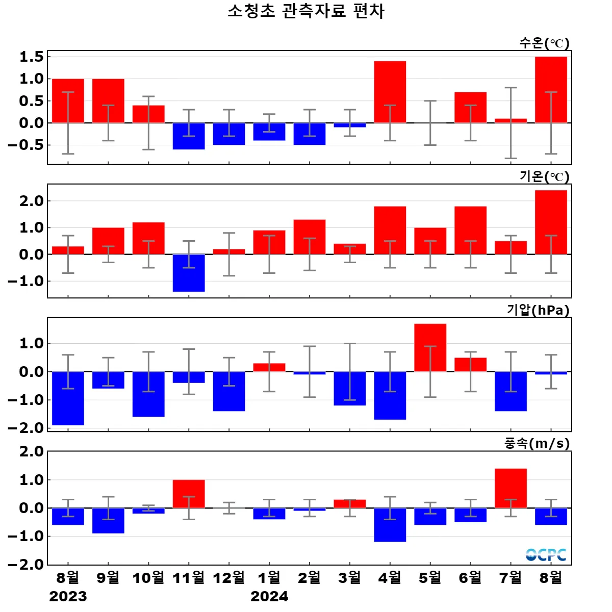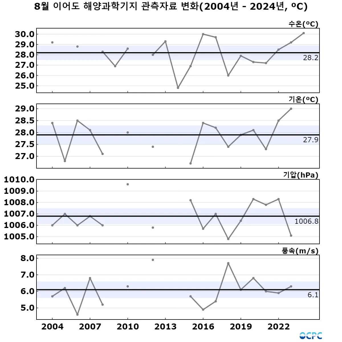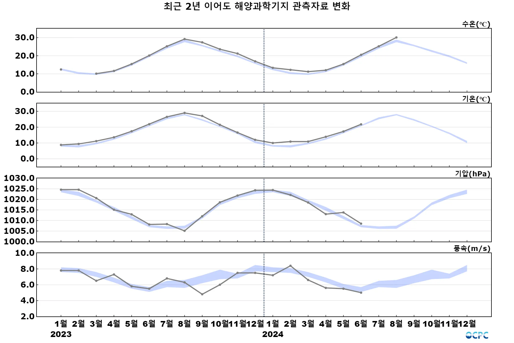 ※ 본 ‘해양과학기지 자료 분석 (2024년 8월)’은 분석은 ‘관할해역 첨단 해양과학기지 구축 및 융합연구’ 과제 및 국립해양조사원에서 제공하는 해양과학기지 관측자료를 사용하였음