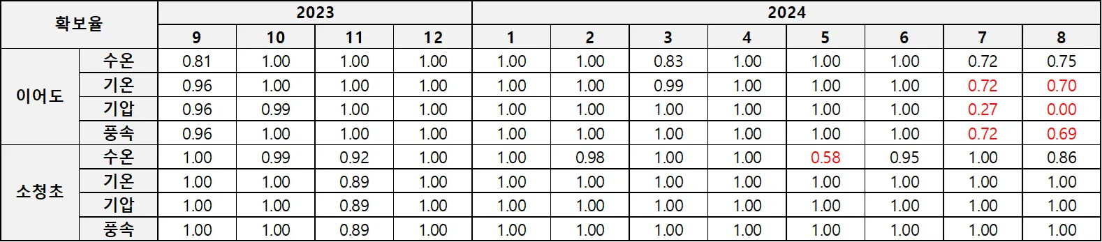 ※ 이어도 기지 기온, 기압, 풍속 자료는 낮은 수집률로 인하여 분석에서 제외하였습니다.