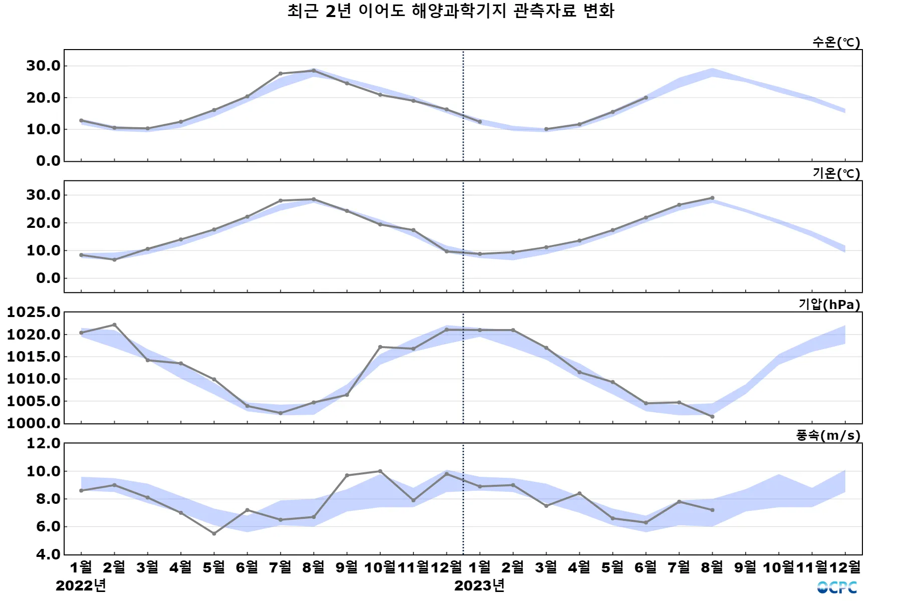 해양과학기지 관측자료 8월 추세