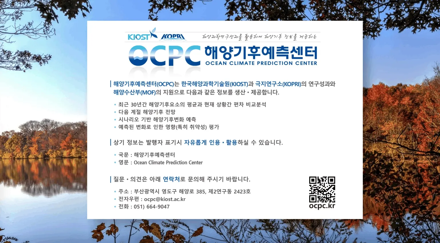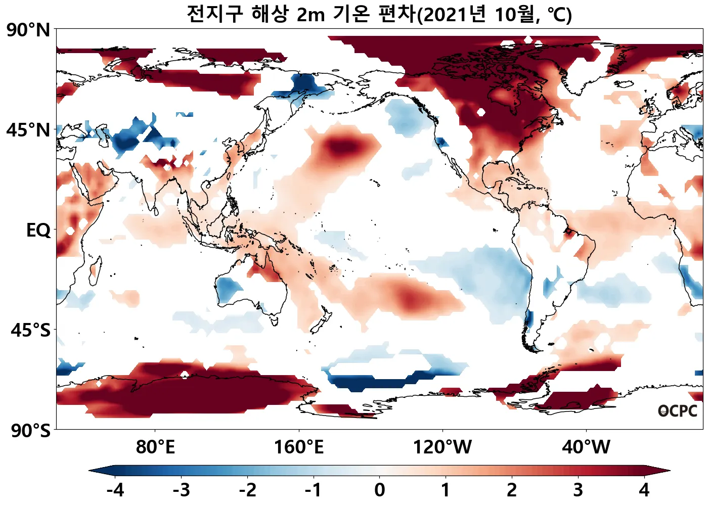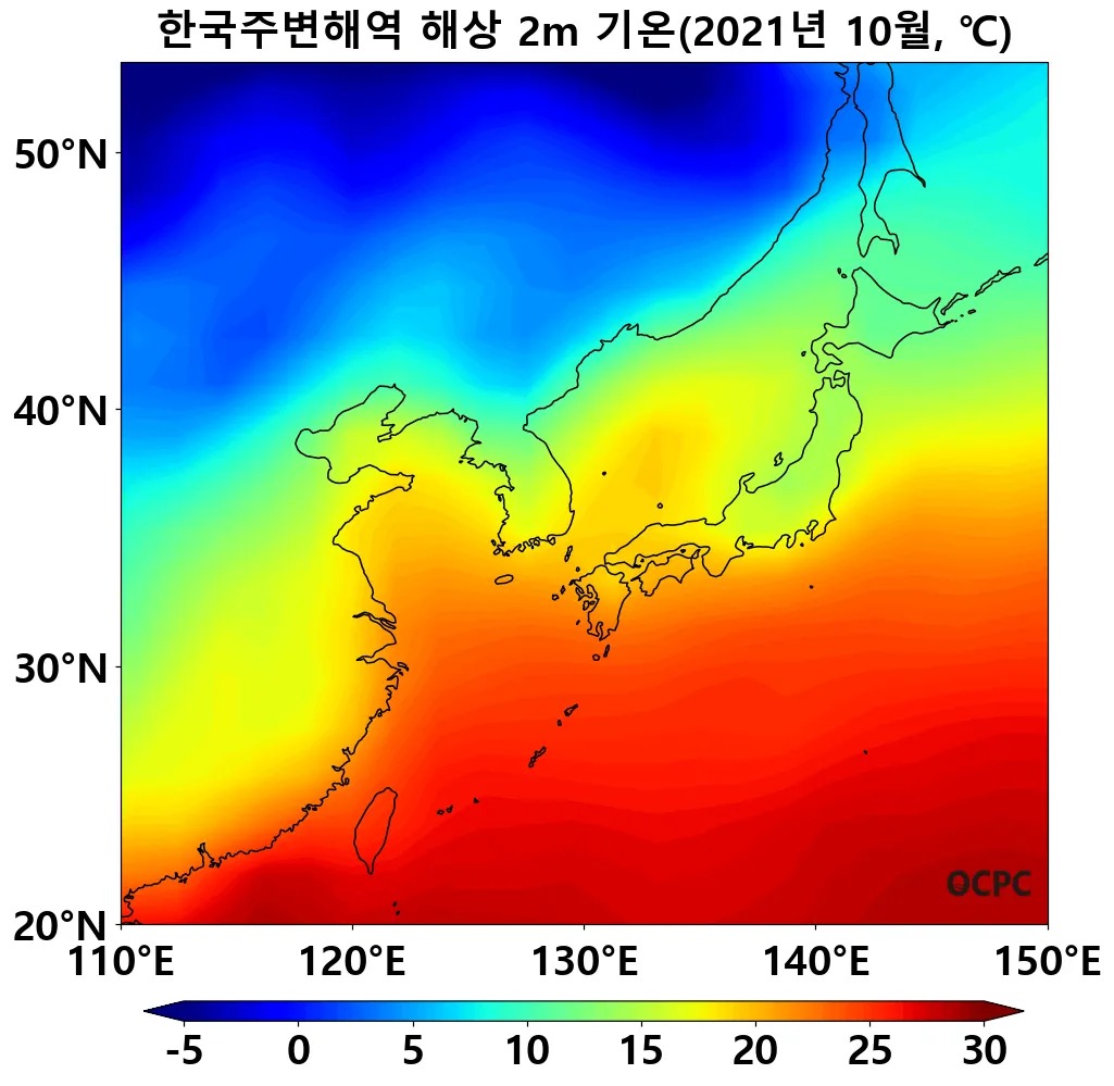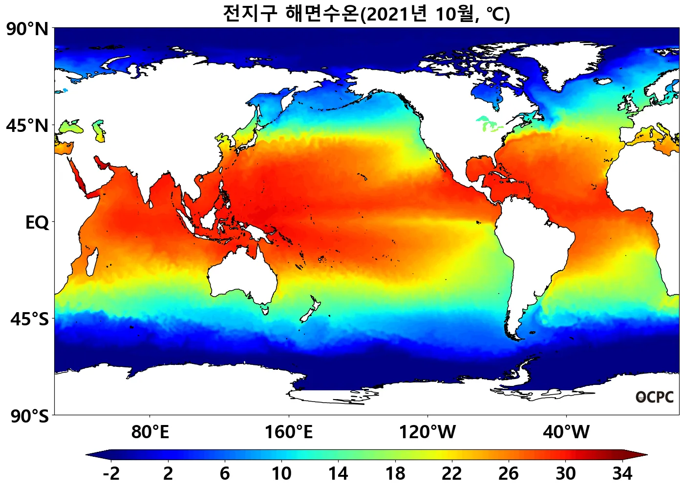 전지구 및 한국주변해역 평균 해면수온은 평년보다 높았으며, 동해와 동중국해 10월 평균 해면수온은 지난 30년 중 최고치를 기록했습니다.