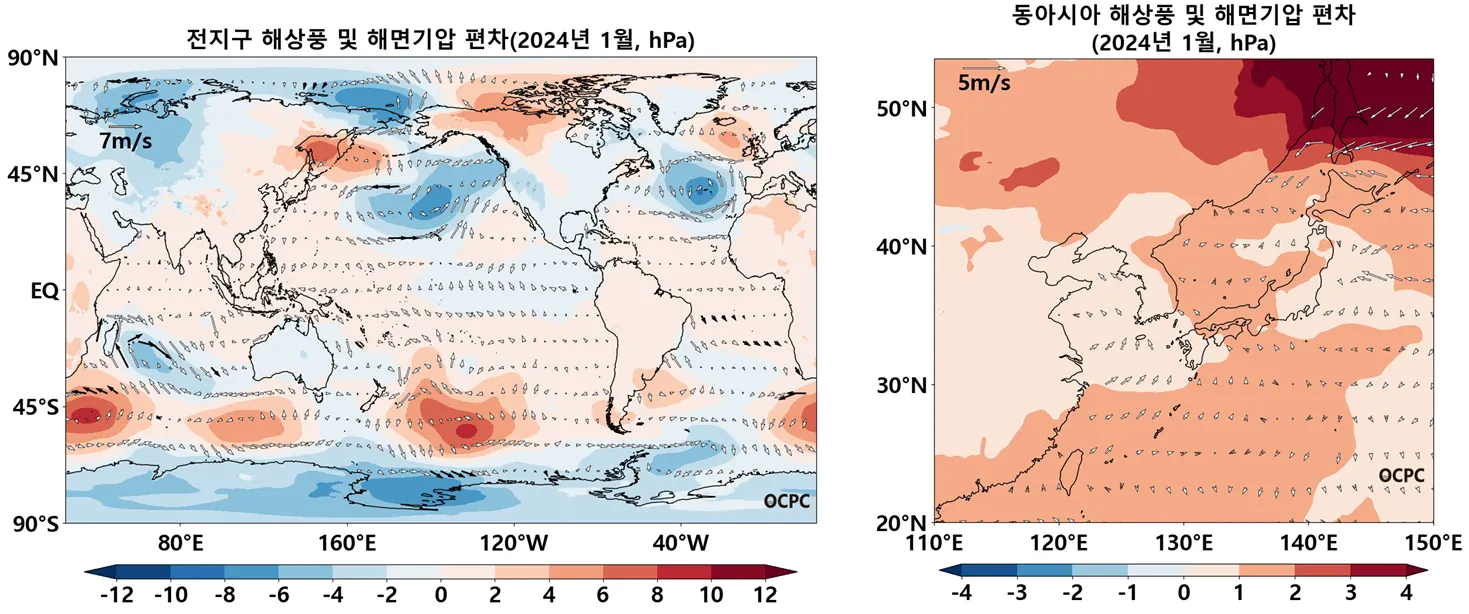 해면기압과 해상풍의 연관성을 고려하여 한 공간분포를 제공합니다. 또한, 해면기압의 특성을 고려하여 해면기압의 시계열 분석은 더 이상 제공하지 않습니다. 1월 해면기압과 해상풍보러가기