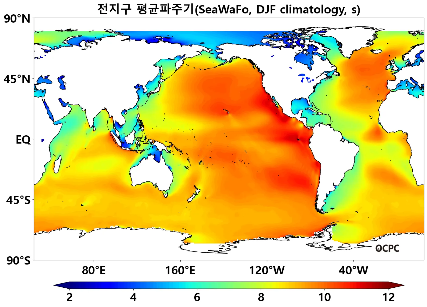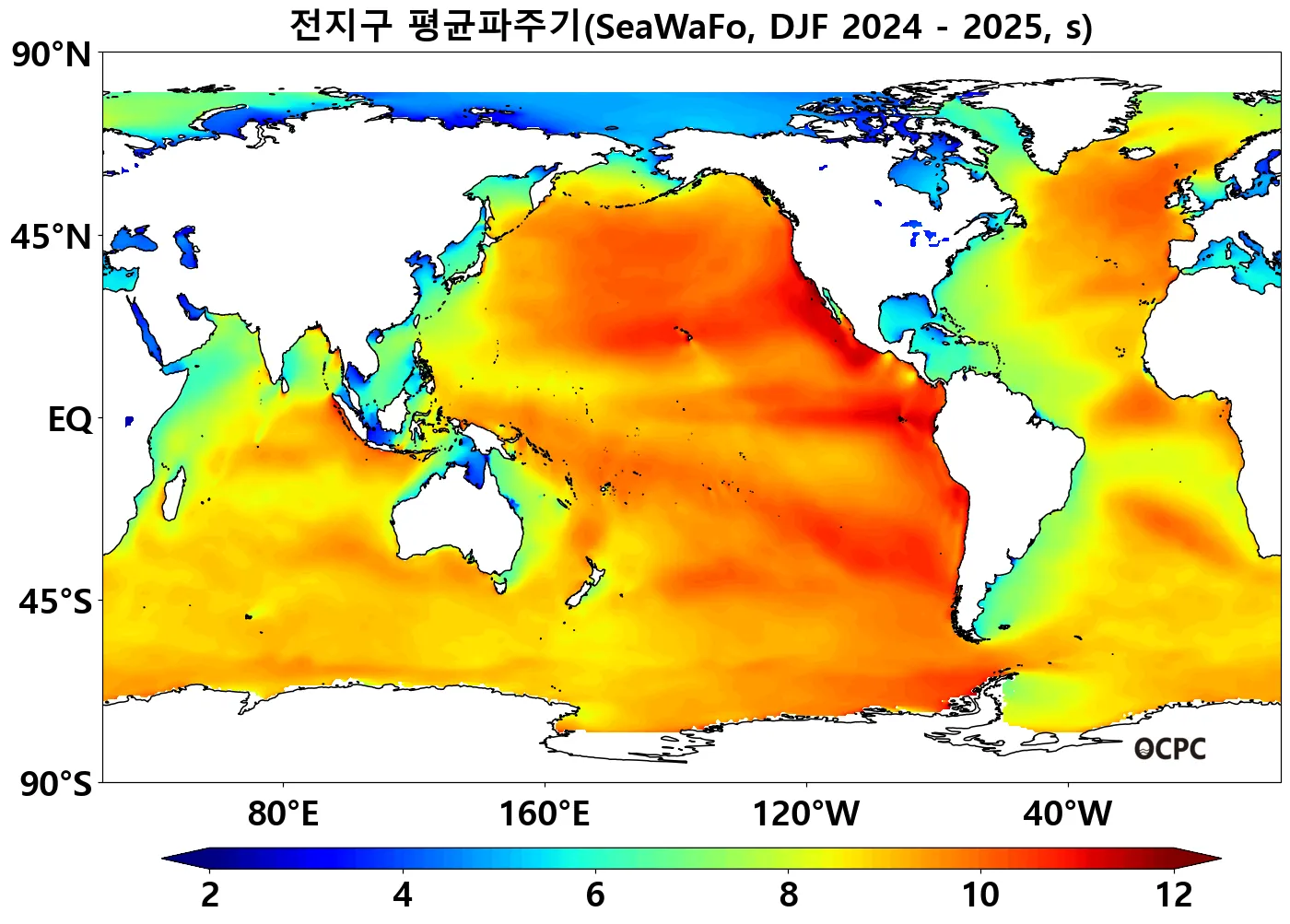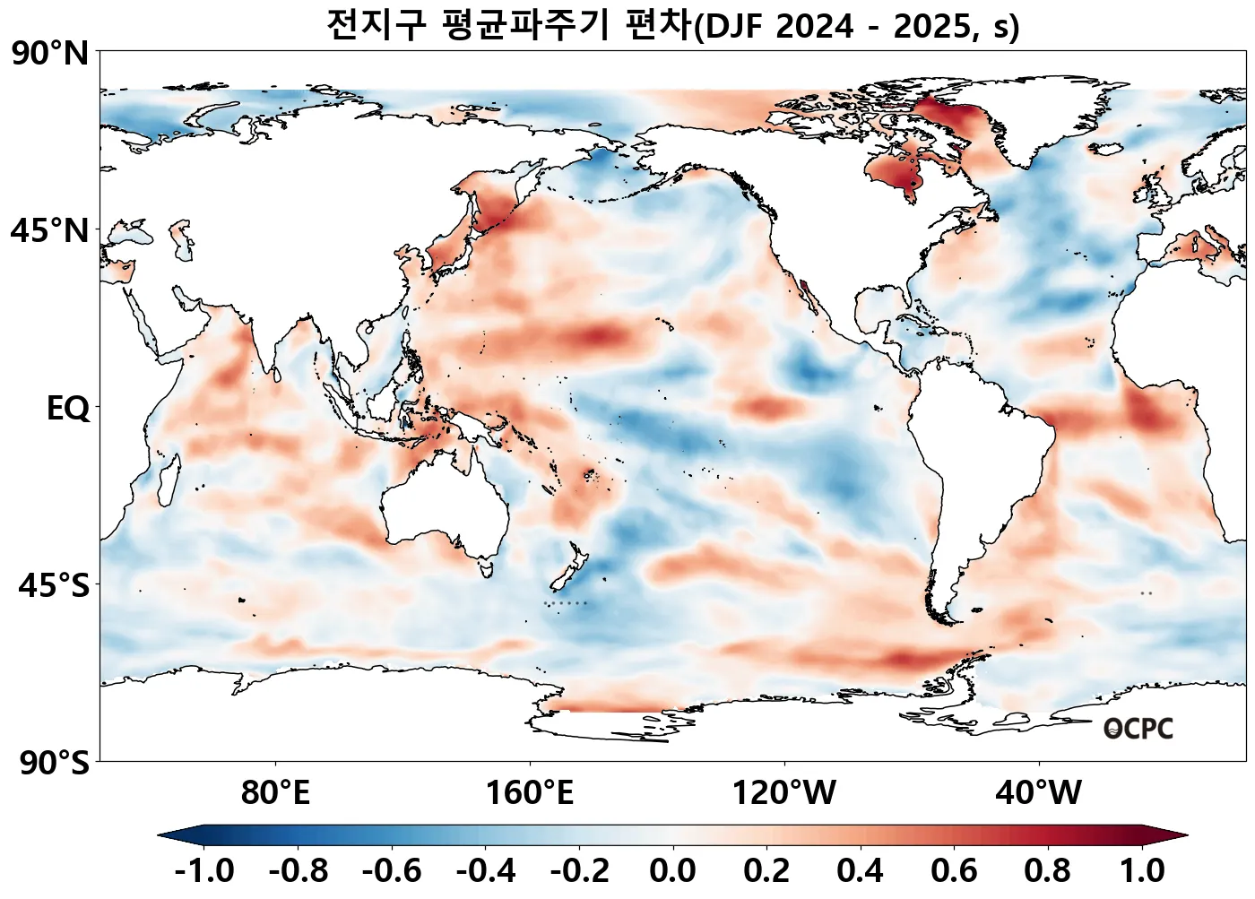 전지구 2024년 12월~2025년 2월 평균파주기는 평년(8.74±0.07초)과 비슷할 것으로 전망됩니다.