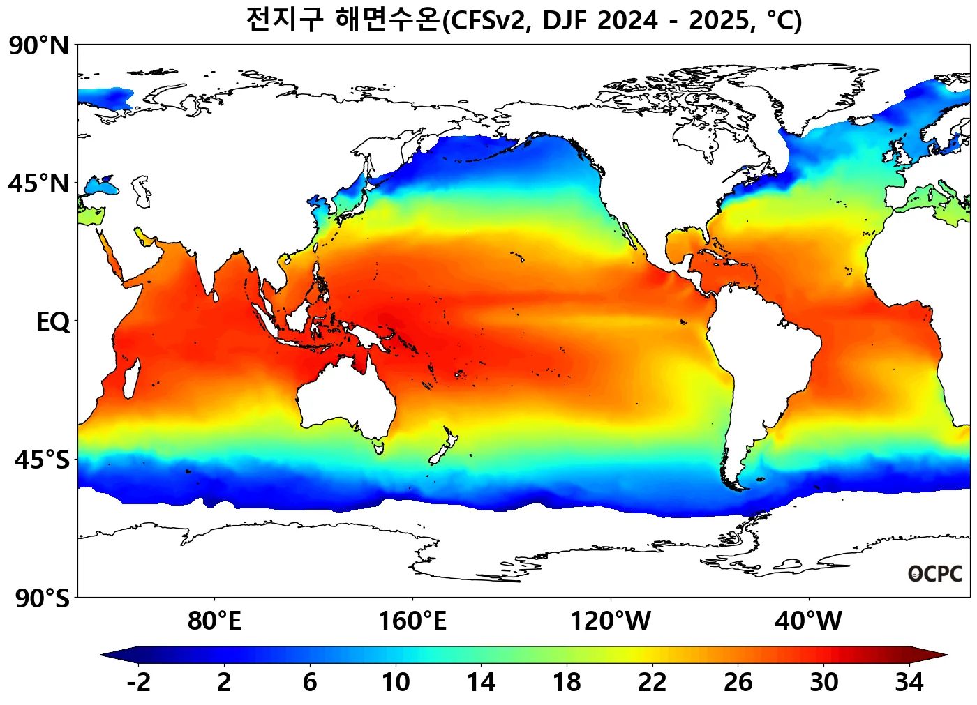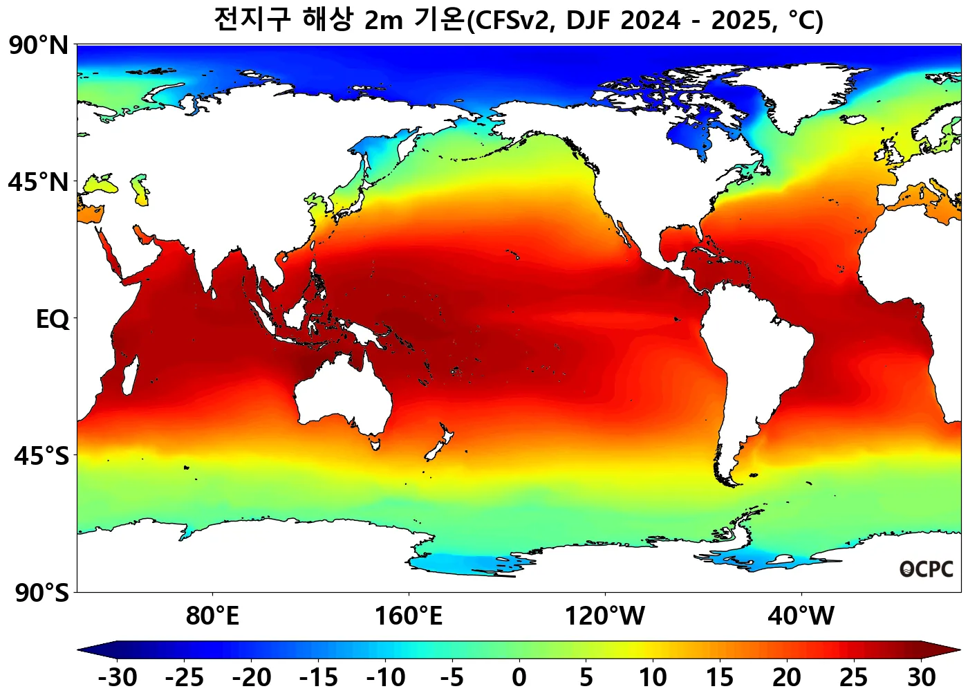 A. 전지구 해상기온 전망(2024년 12월~2025년 2월 평균)